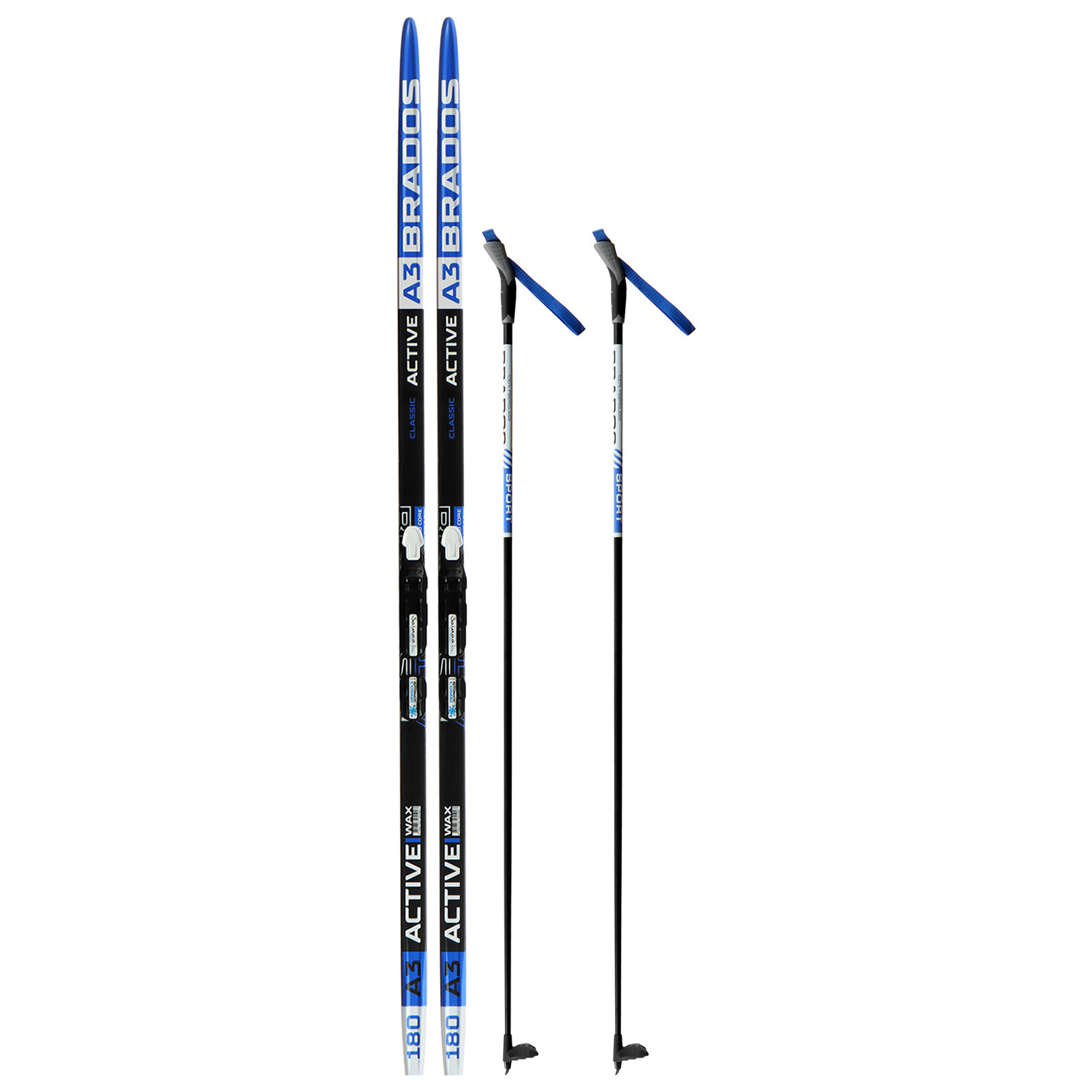 Лыжный комплект с креплениями 75 мм с палками 150 STEP Brados LS Blue