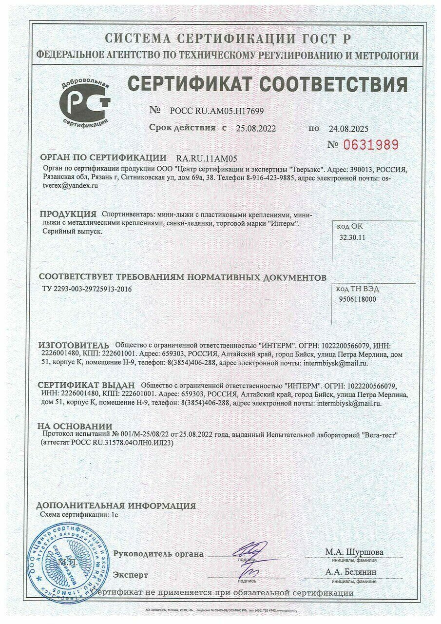 Мини-лыжи с пластмассовыми креплениями 400*70*120мм Интерм синий интересное: