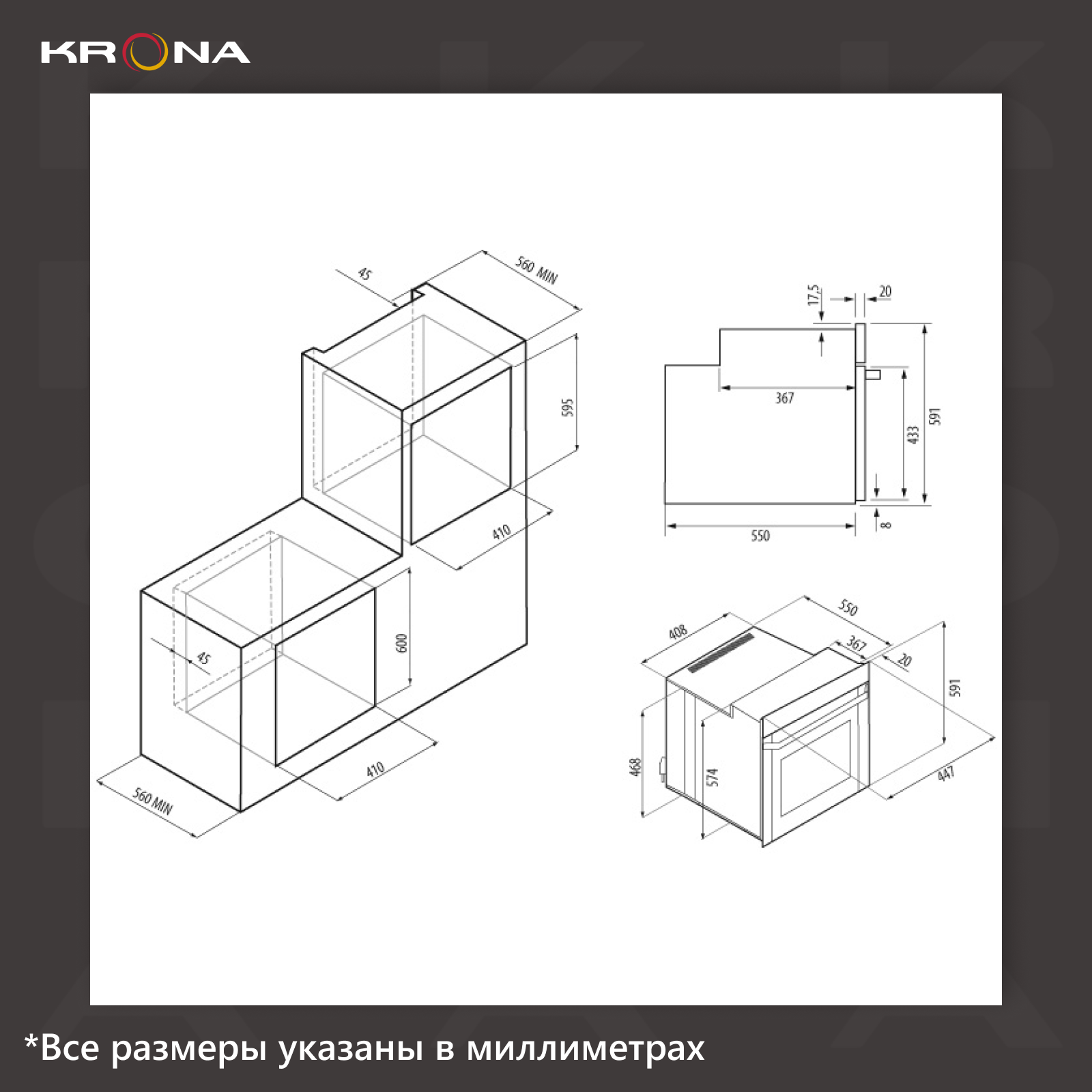 Духовой шкаф Krona CORRENTE 45 BL 550x447x591