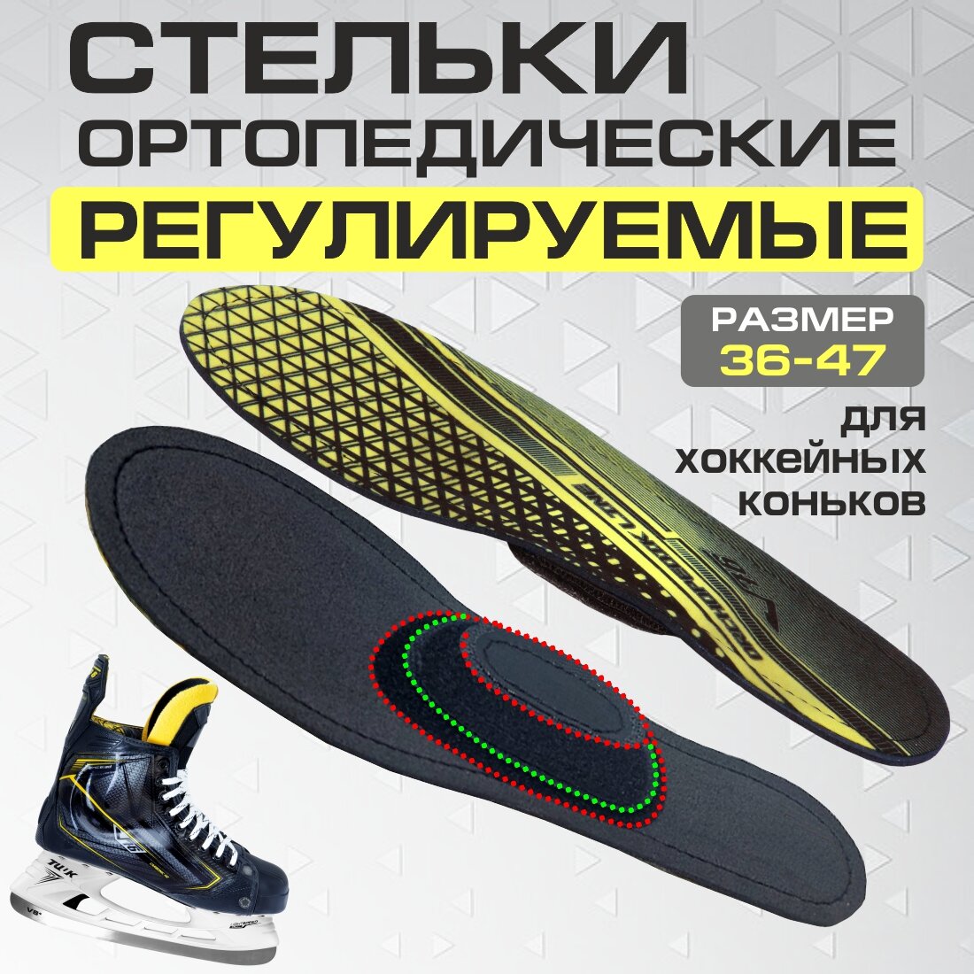 Купить Стельки хоккейные для коньков ортопедические регулируемые