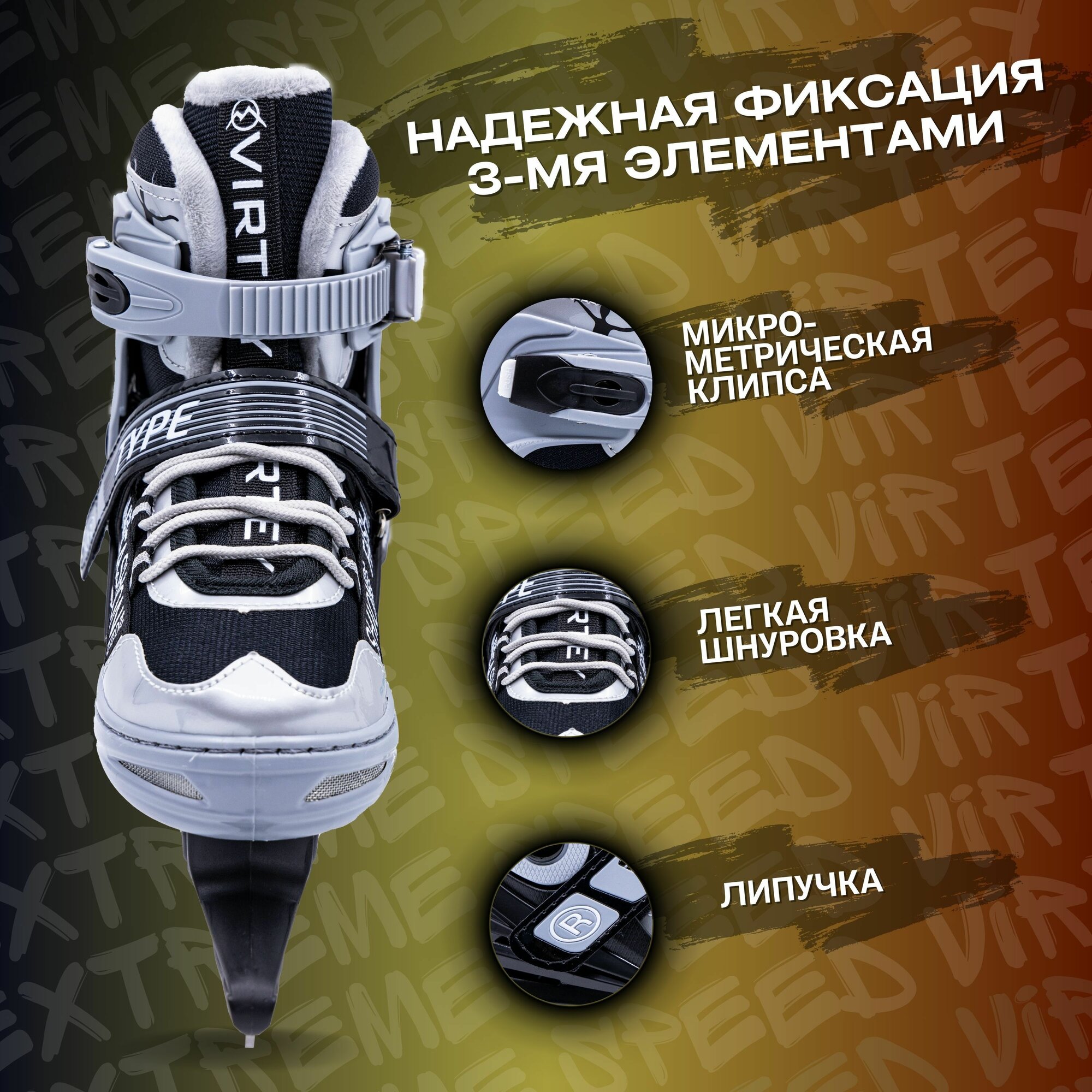 Коньки Virtey "TYPE", детские, прогулочные, раздвижные, ледовые, черно-серые интересное: