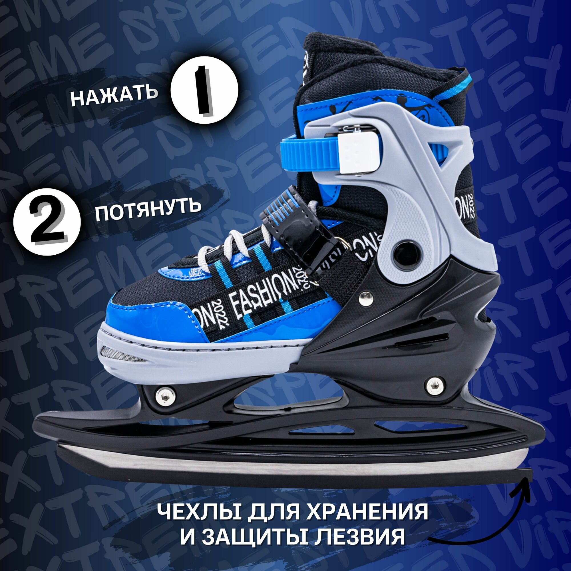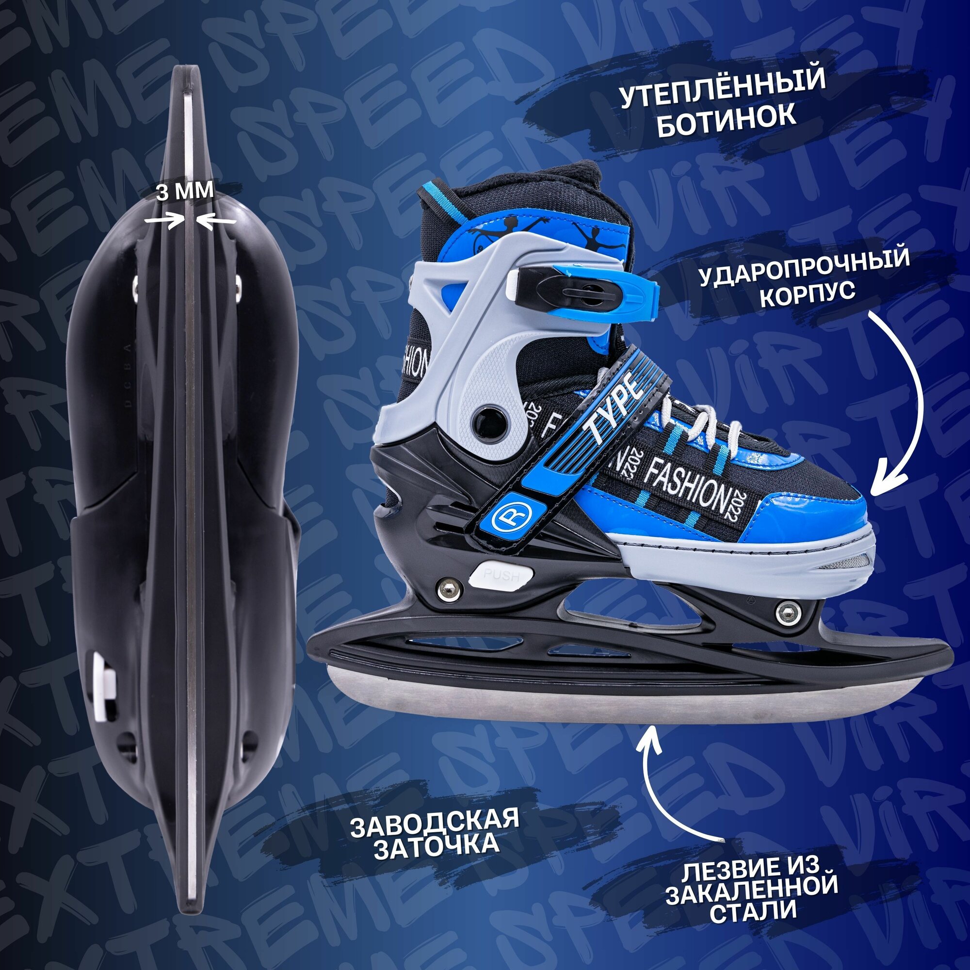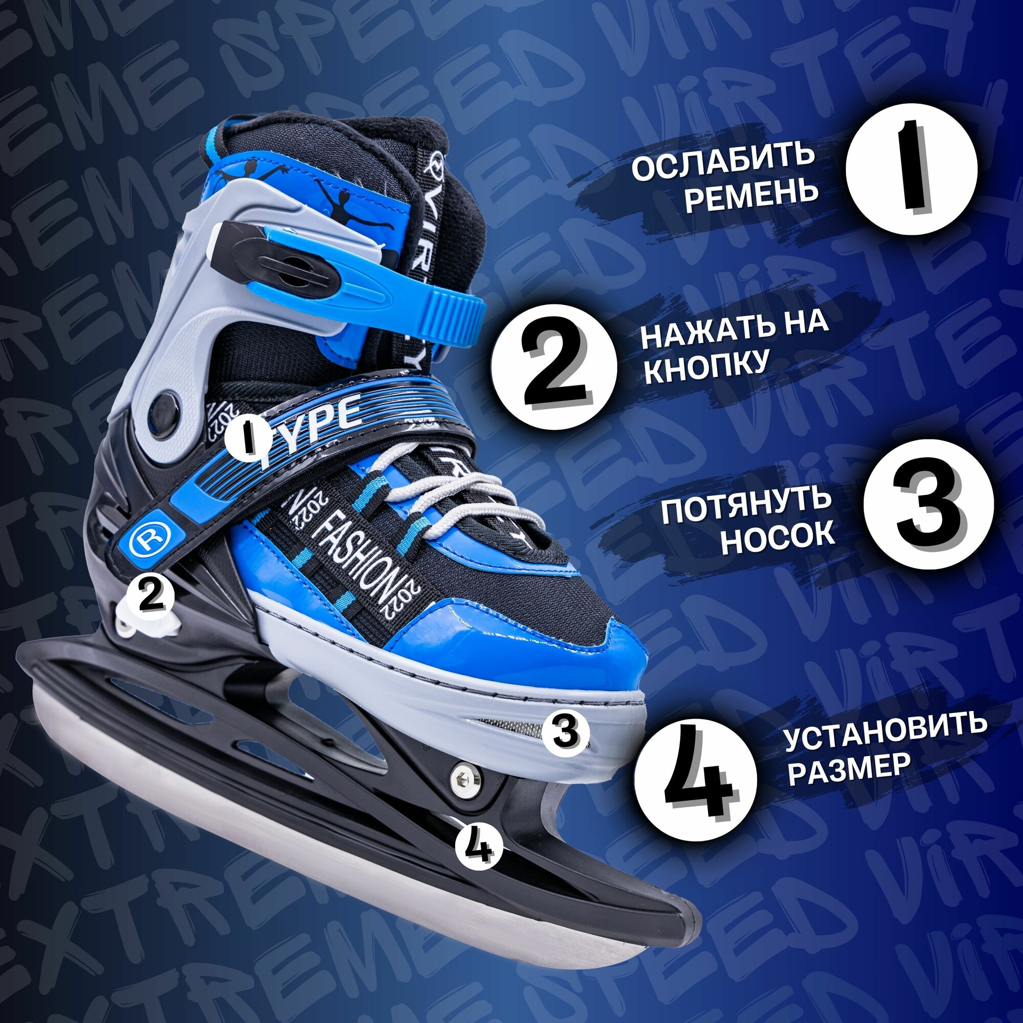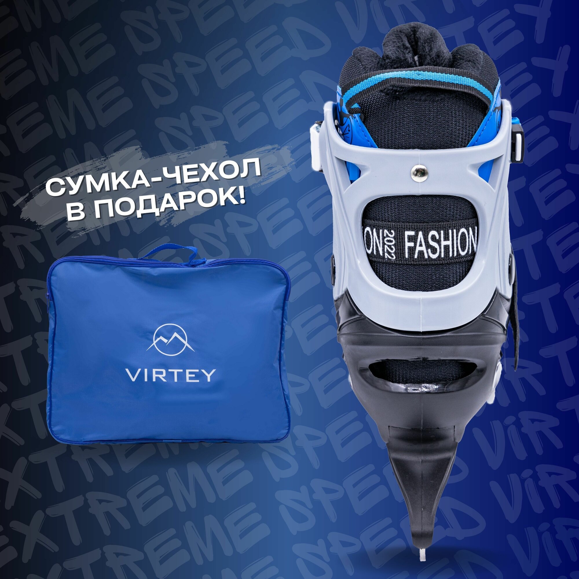 Коньки Virtey "TYPE", детские, ледовые, прогулочные, 33-36 размер, синие интересное: