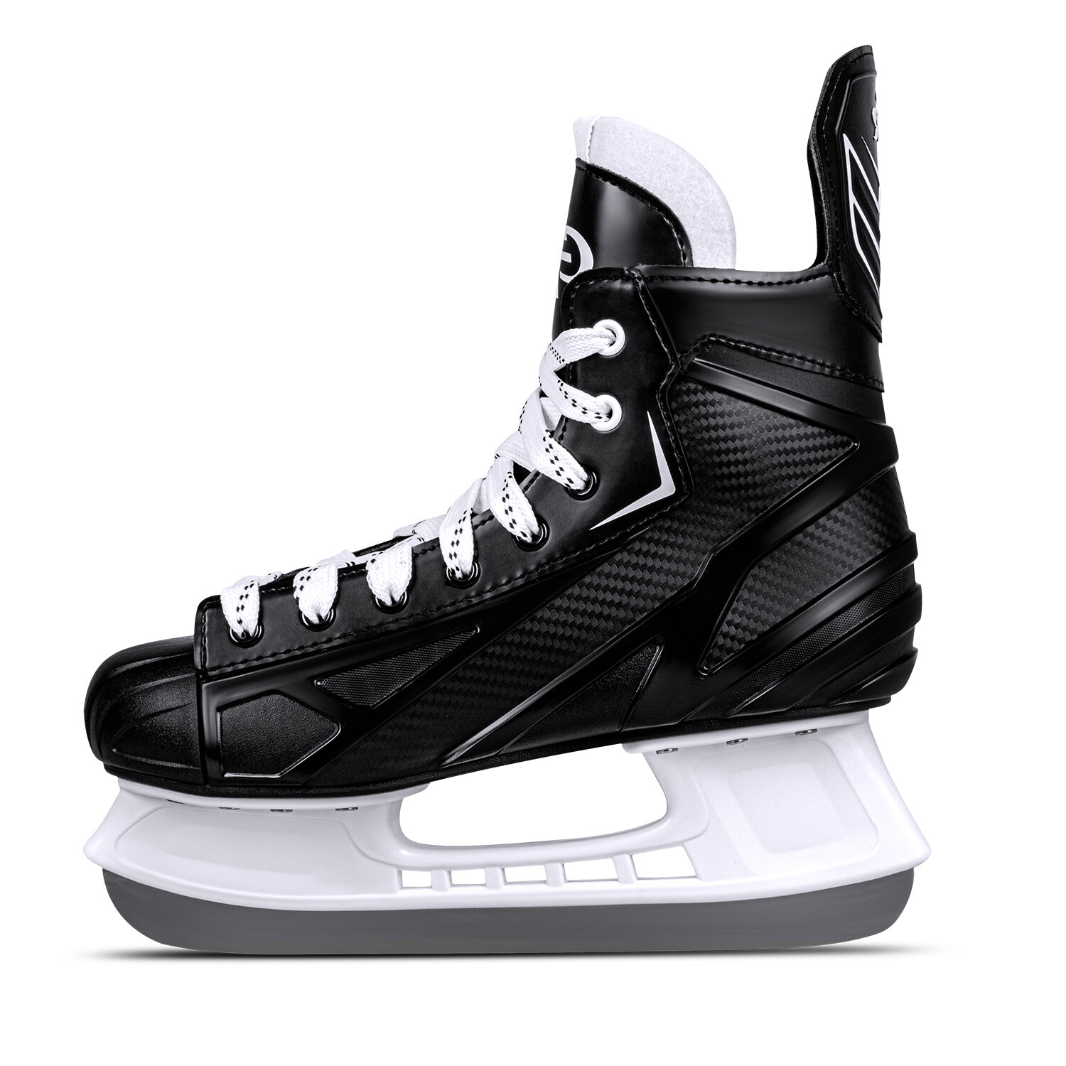Купить Хоккейные коньки ТМ City-Ride, лезвия нержавеющая сталь/заводская заточка, ботинки нейлон/ПВХ, чёрный/белый, 44