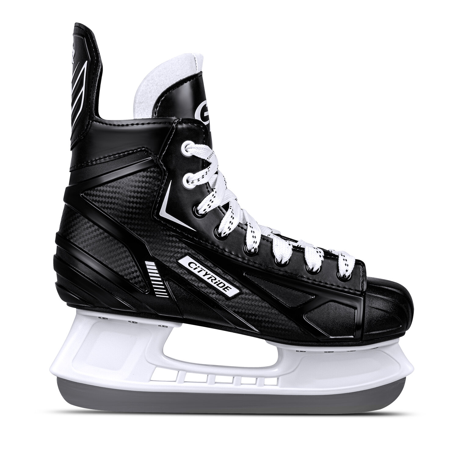 Хоккейные коньки ТМ City-Ride, лезвия нержавеющая сталь/заводская заточка, ботинки нейлон/ПВХ, чёрный/белый, 47