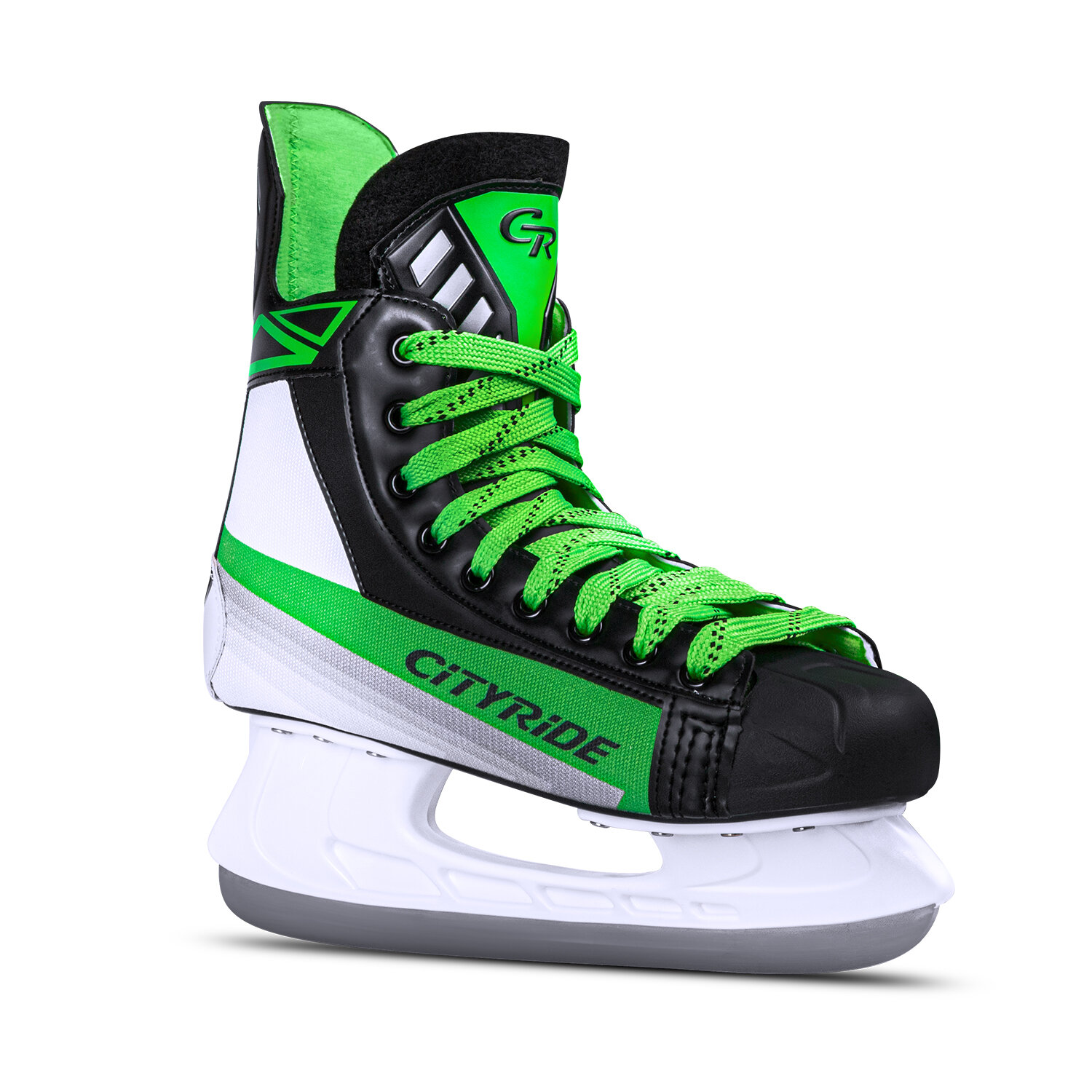 Купить Хоккейные коньки ТМ City-Ride, лезвия нержавеющая сталь/заводская заточка, ботинки нейлон/ПВХ, чёрный/зеленый, 39