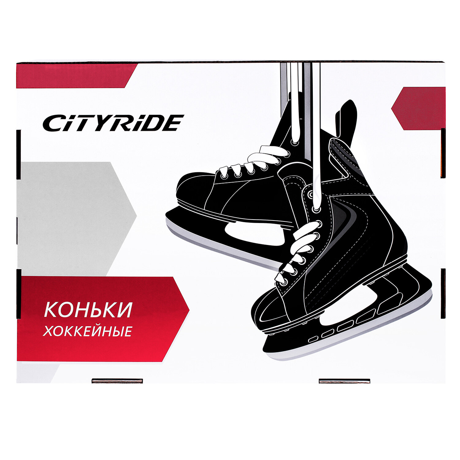 Хоккейные коньки ТМ City-Ride, лезвия нержавеющая сталь/заводская заточка, ботинки нейлон/ПВХ, чёрный/красный, 41