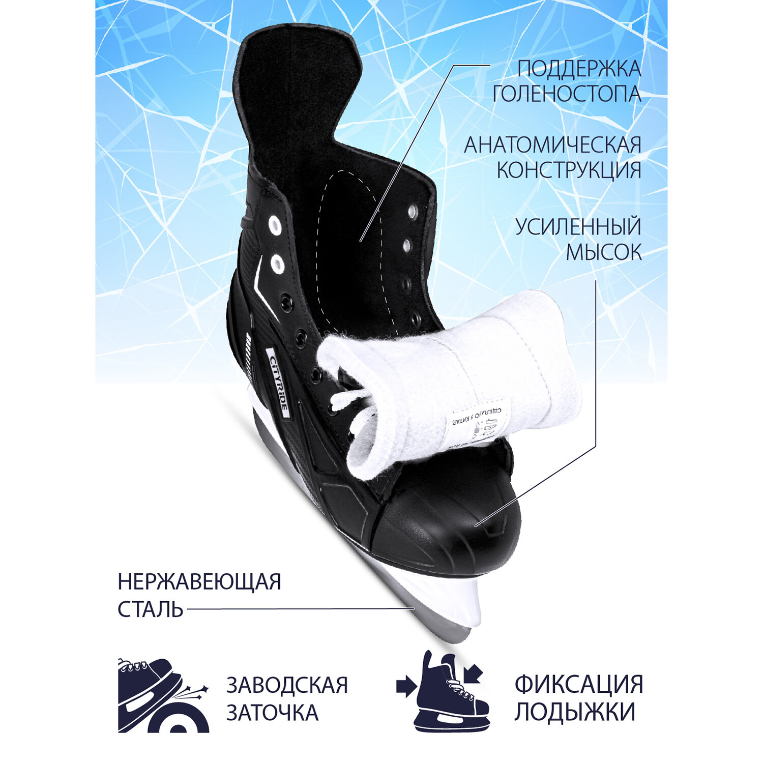 Хоккейные коньки ТМ City-Ride, лезвия нержавеющая сталь/заводская заточка, ботинки нейлон/ПВХ, чёрный/белый, 44