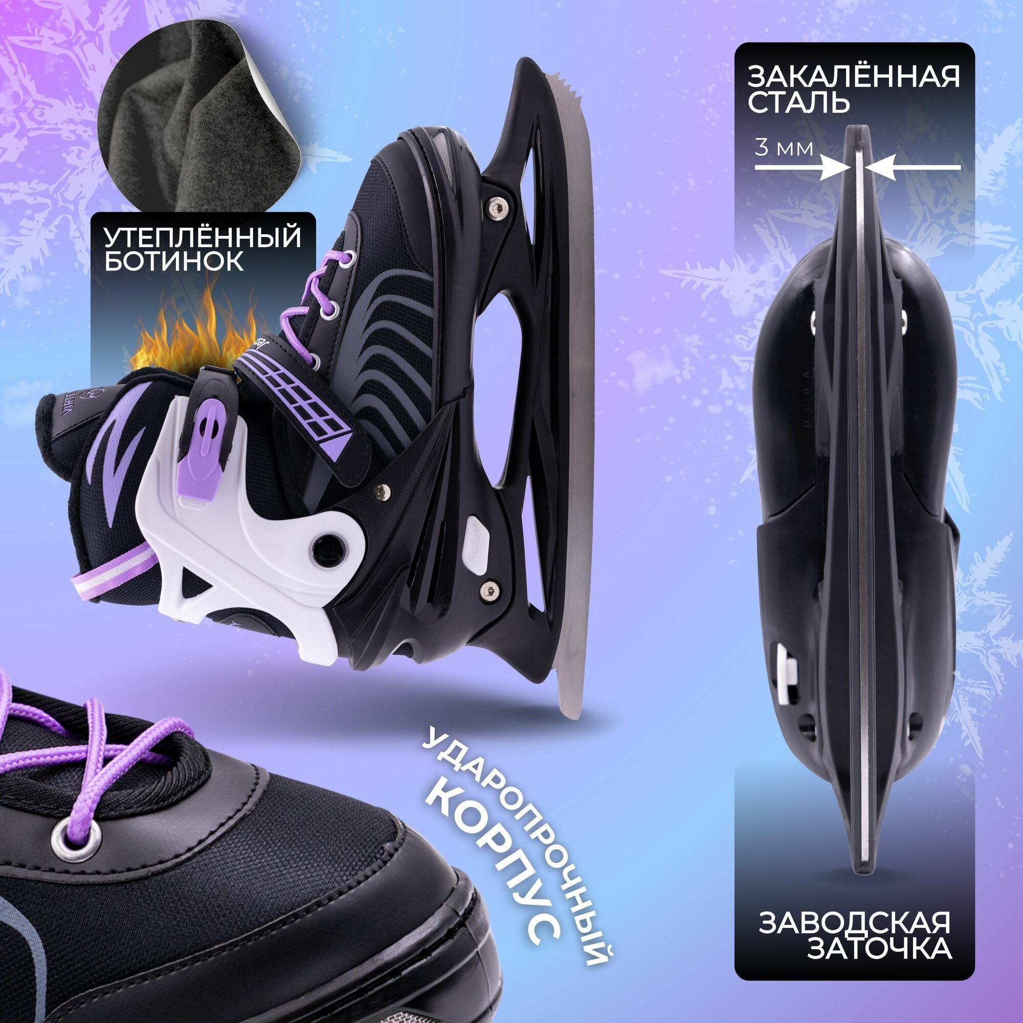 Коньки ледовые раздвижные детские Virtey Jessica 33-40 р. интересное: