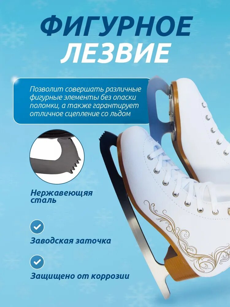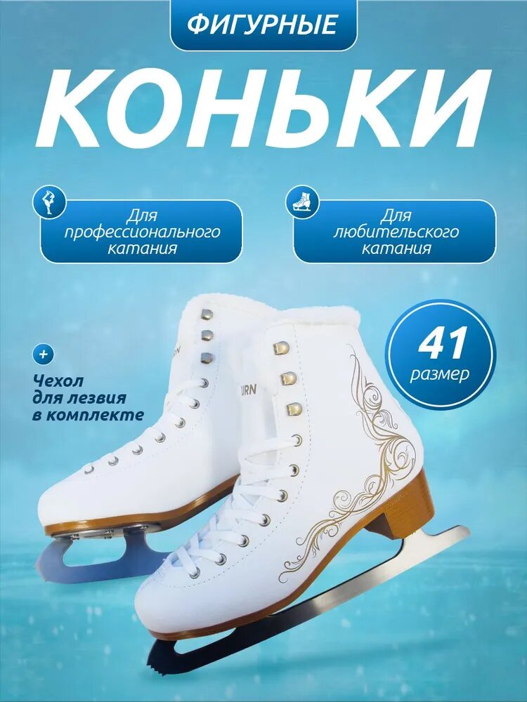 СохранитьКоньки фигурные "ORNAMENT" золото с мехом, размер 41. Для профессионального и любительского катания. Артикул КФ-8913 интересное: