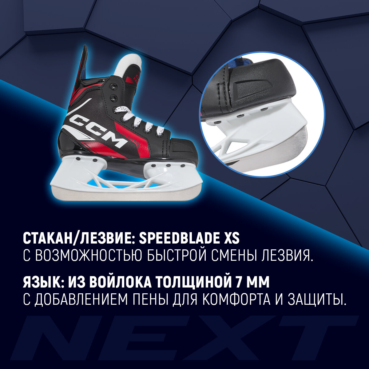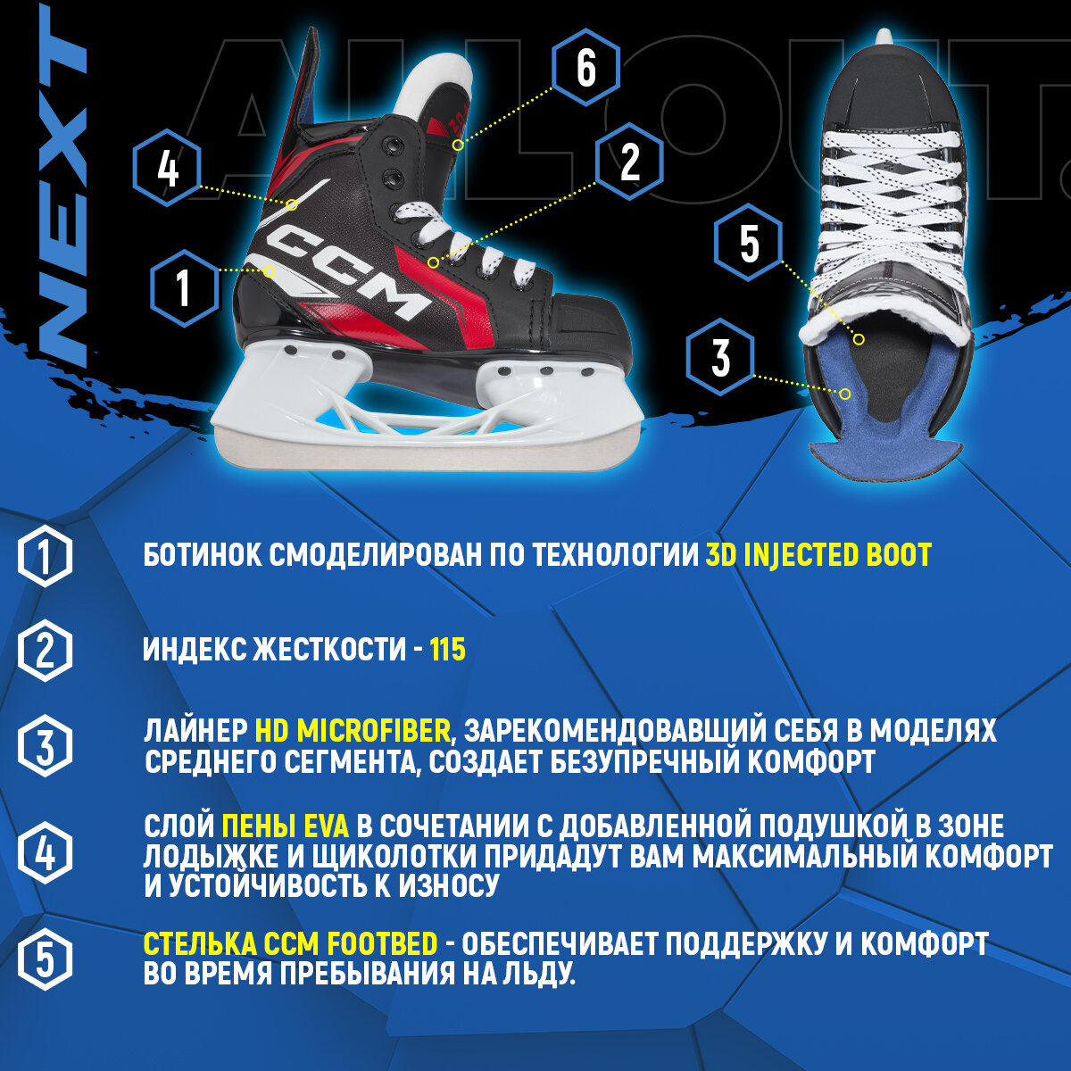 Коньки хоккейные детские CCM SK NEXT YT REGULAR, 23 размер, 6 US, профессиональный, черный интересное: