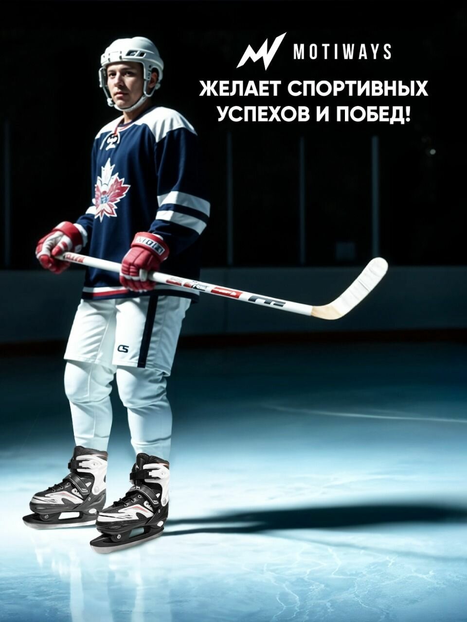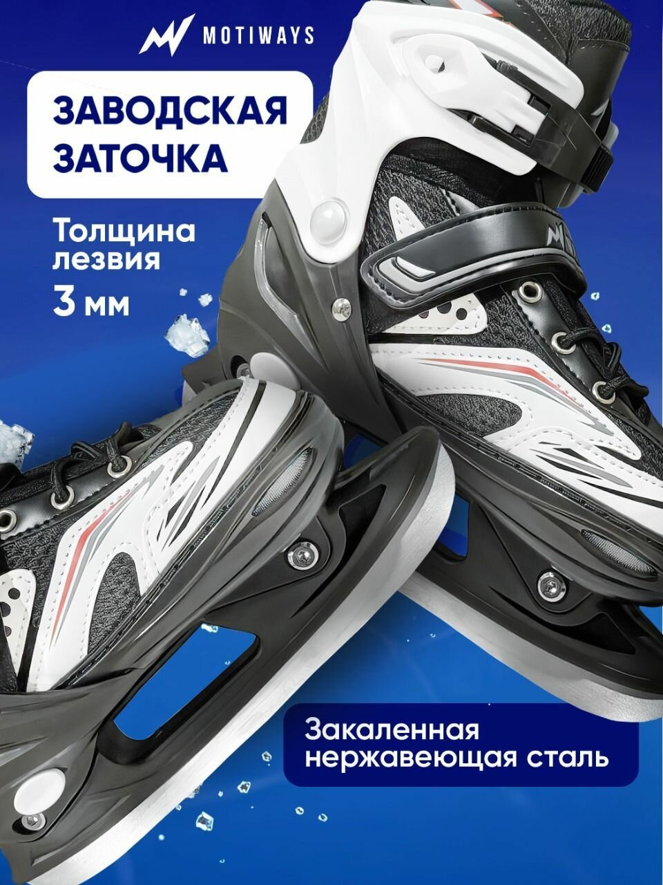 Купить Коньки хоккейные Motiways раздвижные на каток, спортивные для катания, со шнуровкой, баклями/клипсамии и липучками, размер 35-38 (M), черно-белые