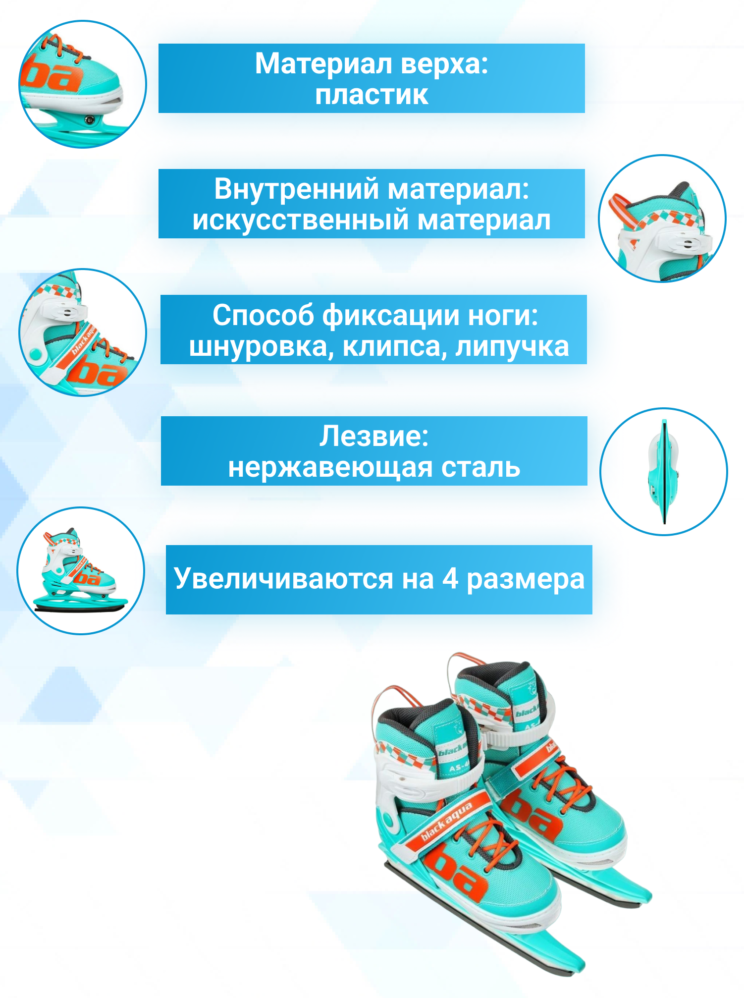 Коньки детские раздвижные BlackAqua AS-408 (р.31-34, мятный-оранжевый) интересное:
