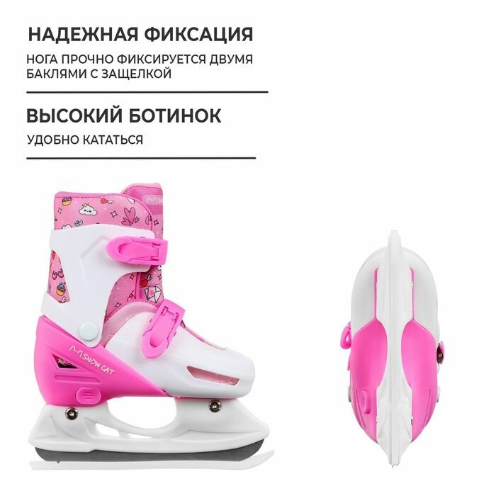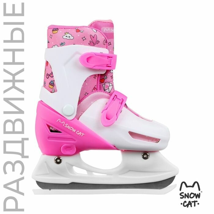Купить Коньки детские Snow Cat раздвижные, размер 26-29, цвет белый, розовый