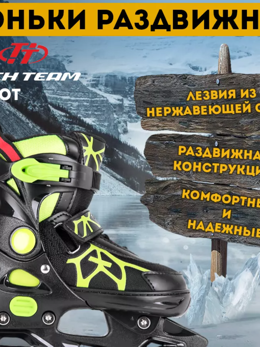 Коньки детские раздвижные Tech Team Kayot, размер 37-40, черный/зеленый интересное: