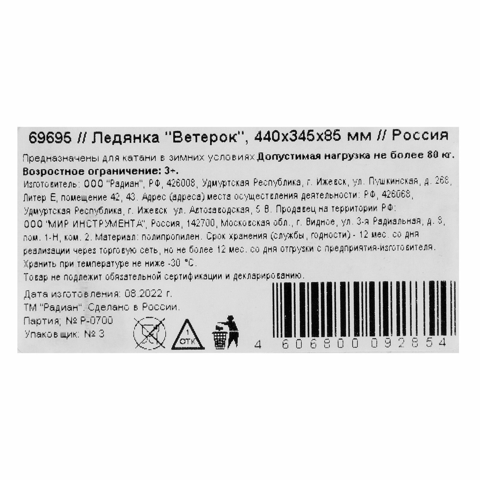 Ледянка "Ветерок", 440х345х85 мм Россия интересное: