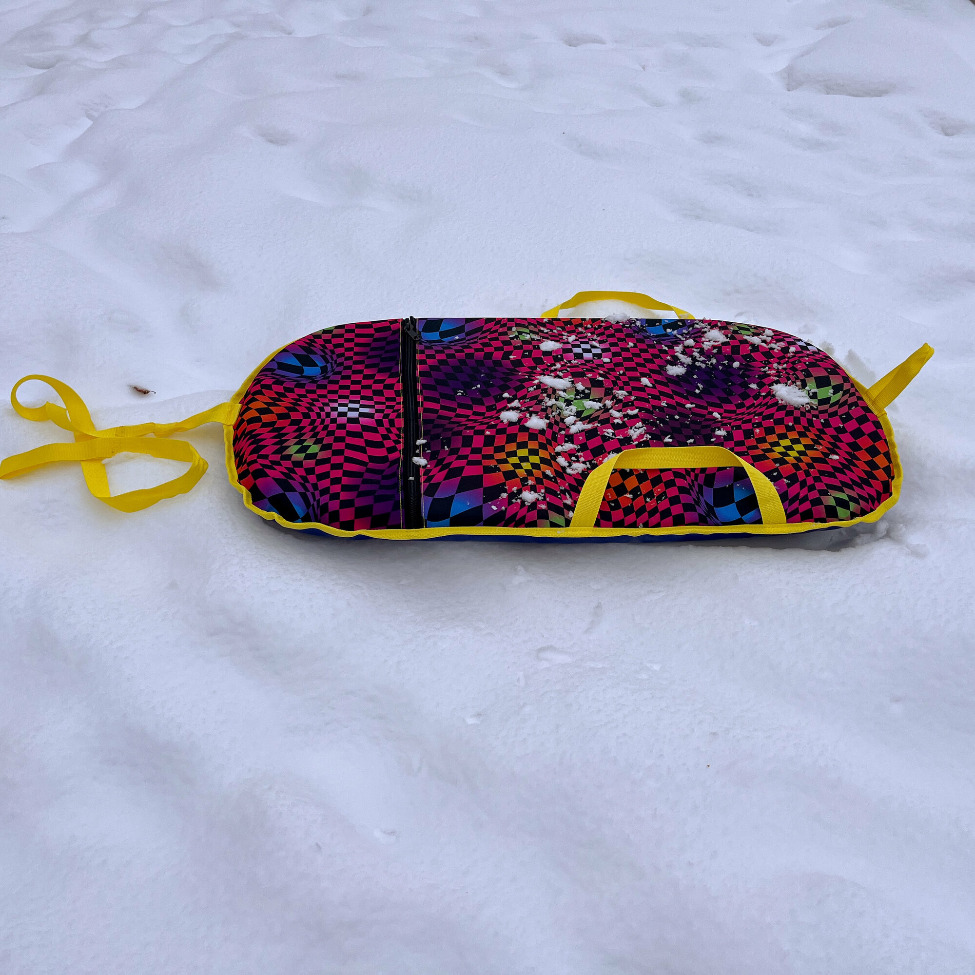 Ледянка мягкая "Скат" 100x60x5 см прямоугольная детская, с ручками для катания с горки (снежинки)