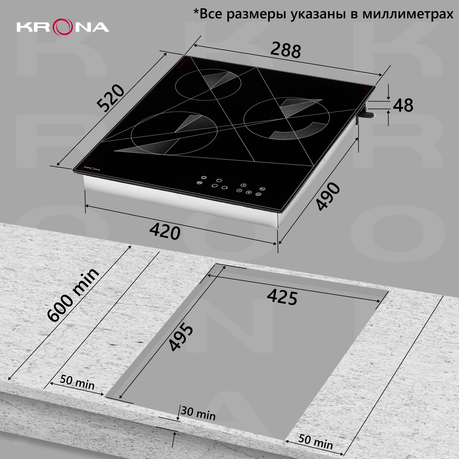 Варочная поверхность KRONA FIDATO 45 BL встраиваемая электрическая (независимая) черная