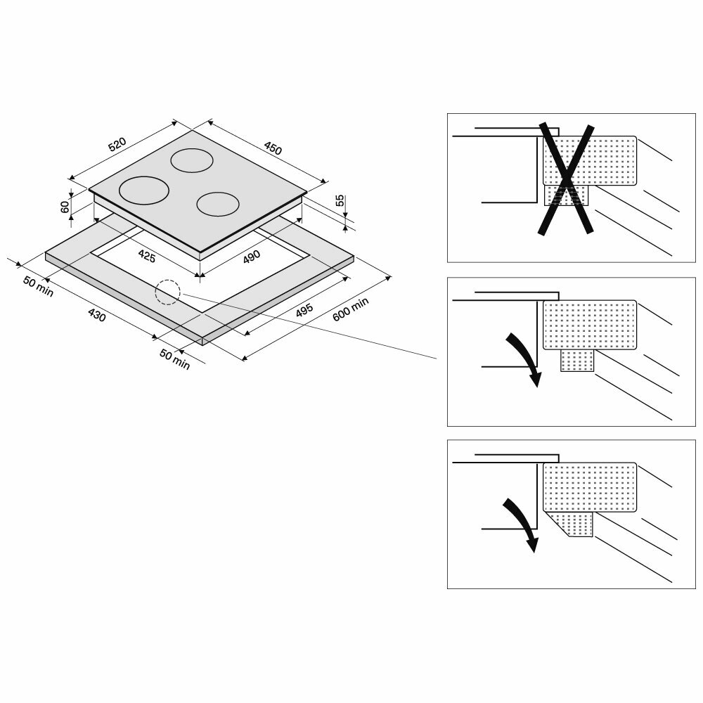 | Минусы: | тихий звук таймера, очень маркая поверхность, высокая температура под плитой, толщина встройки, на низких режимах импульсная работа |