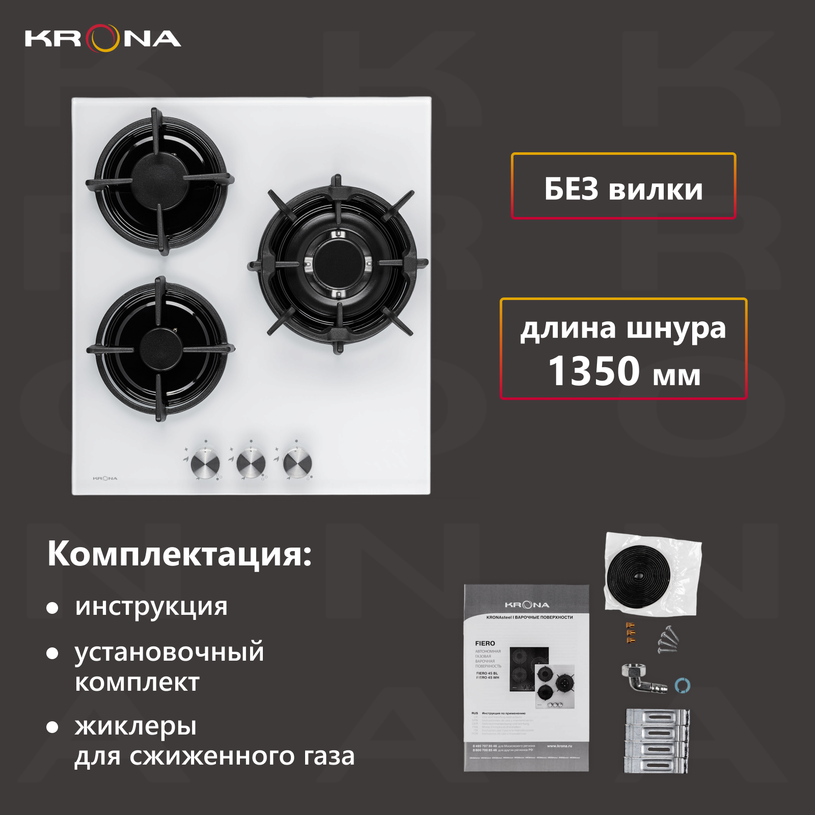 KRONA FIERO 45 WH Газовая варочная поверхность
