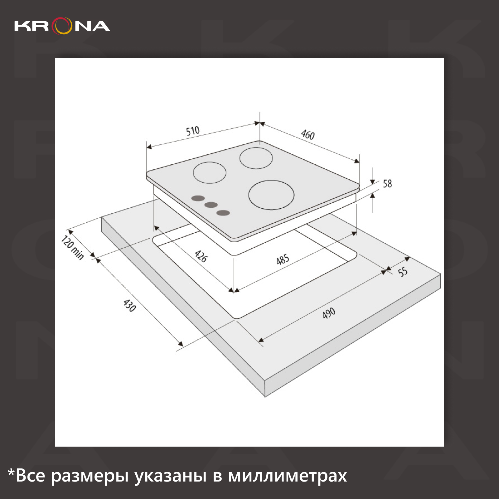 Варочная панель Krona FIERO 45 WH 510x460x100