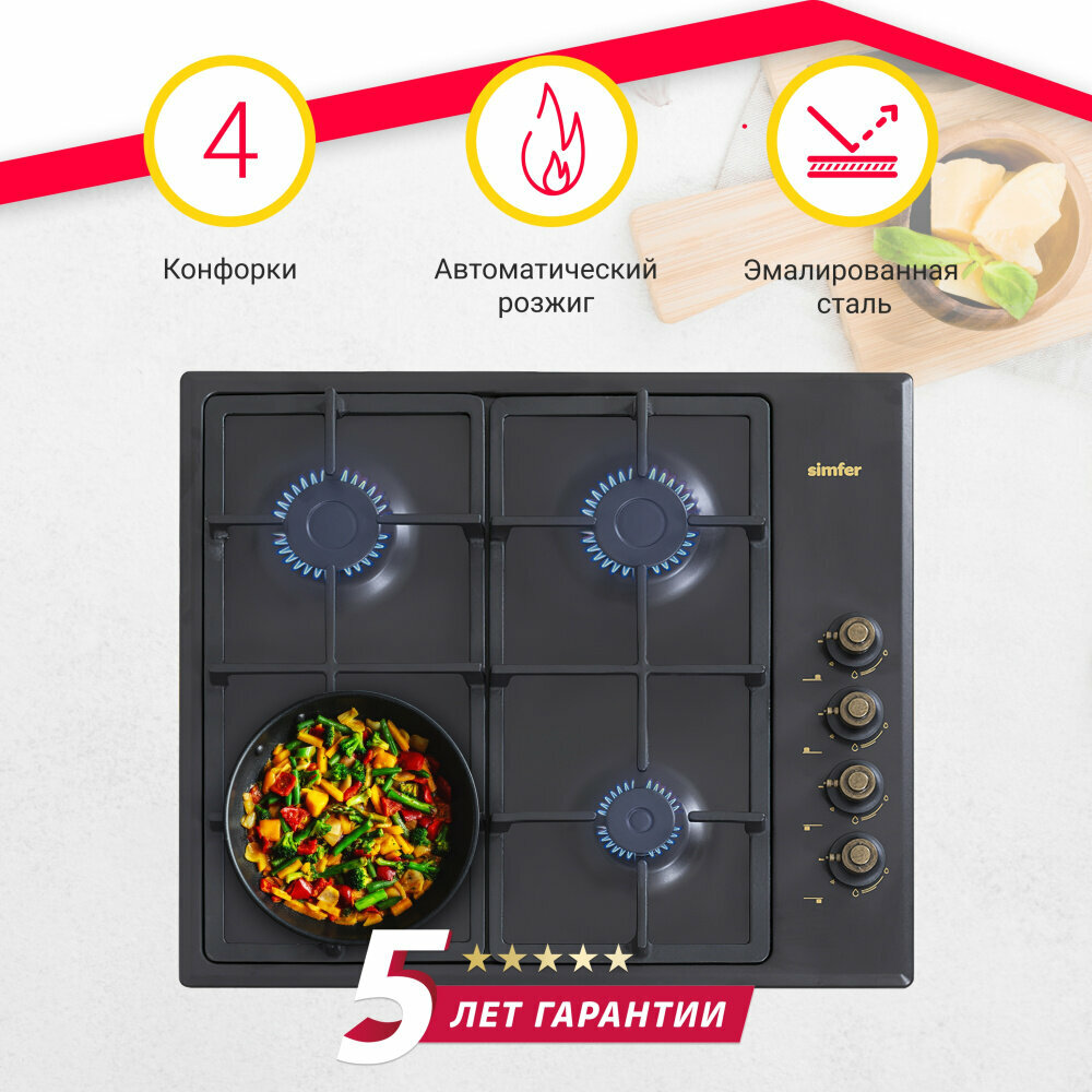 Газовая варочная панель Simfer H60Q40O420, с автоподжигом