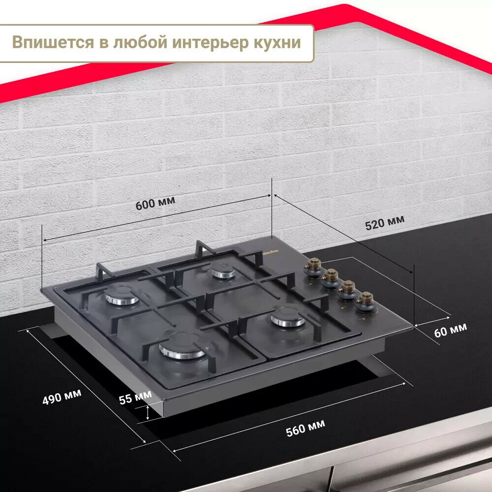 Газовая варочная панель Simfer H60Q40L420, с автоподжигом, антрацит