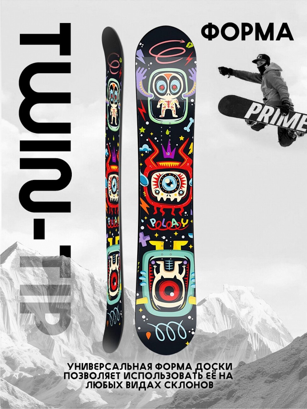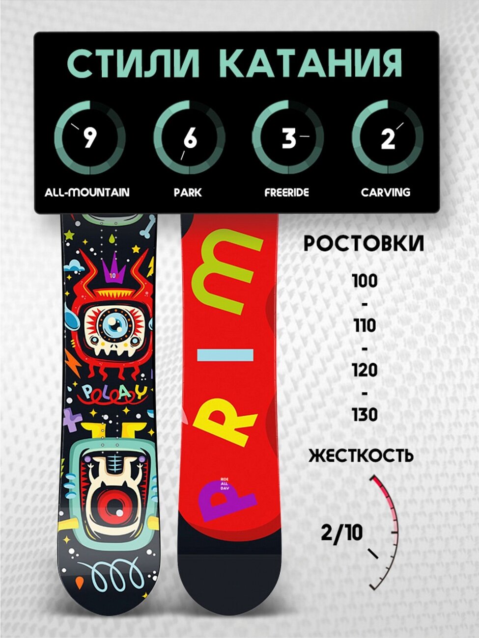 Сноуборд Prime Kids Play, год 2025, ростовка 130см интересное: