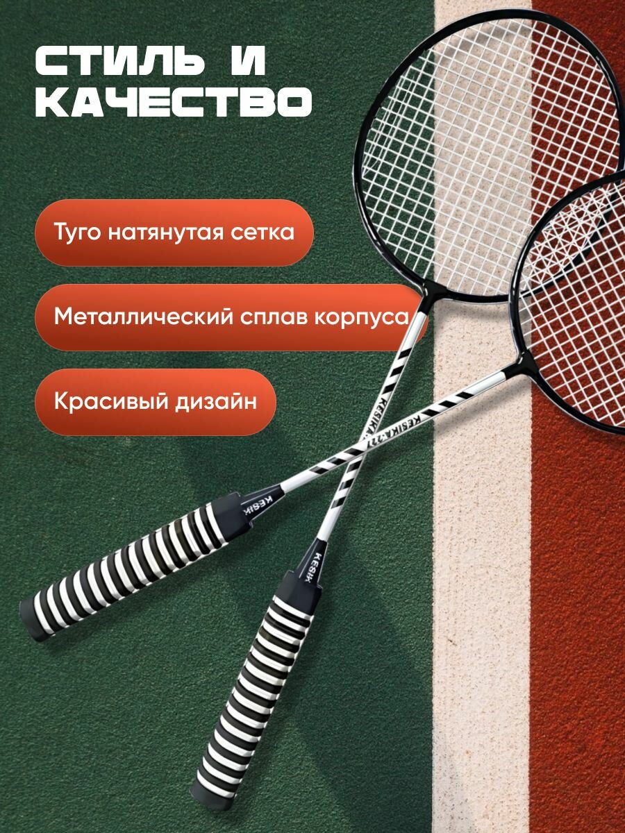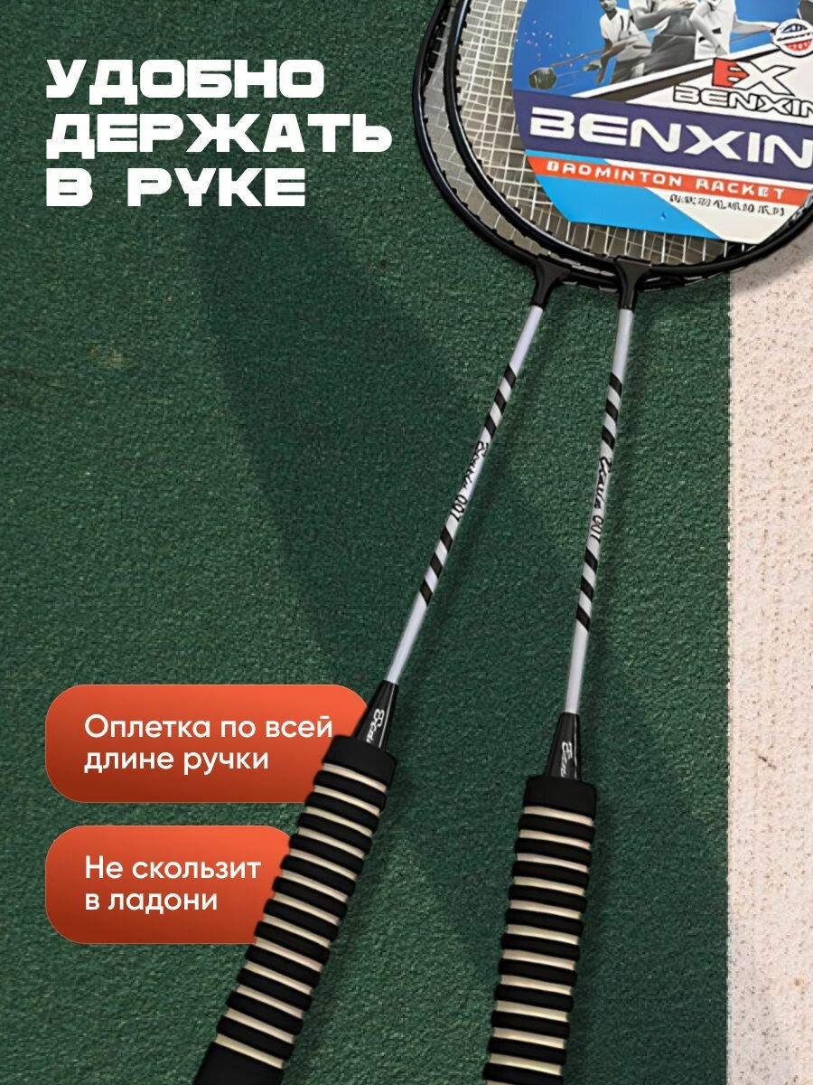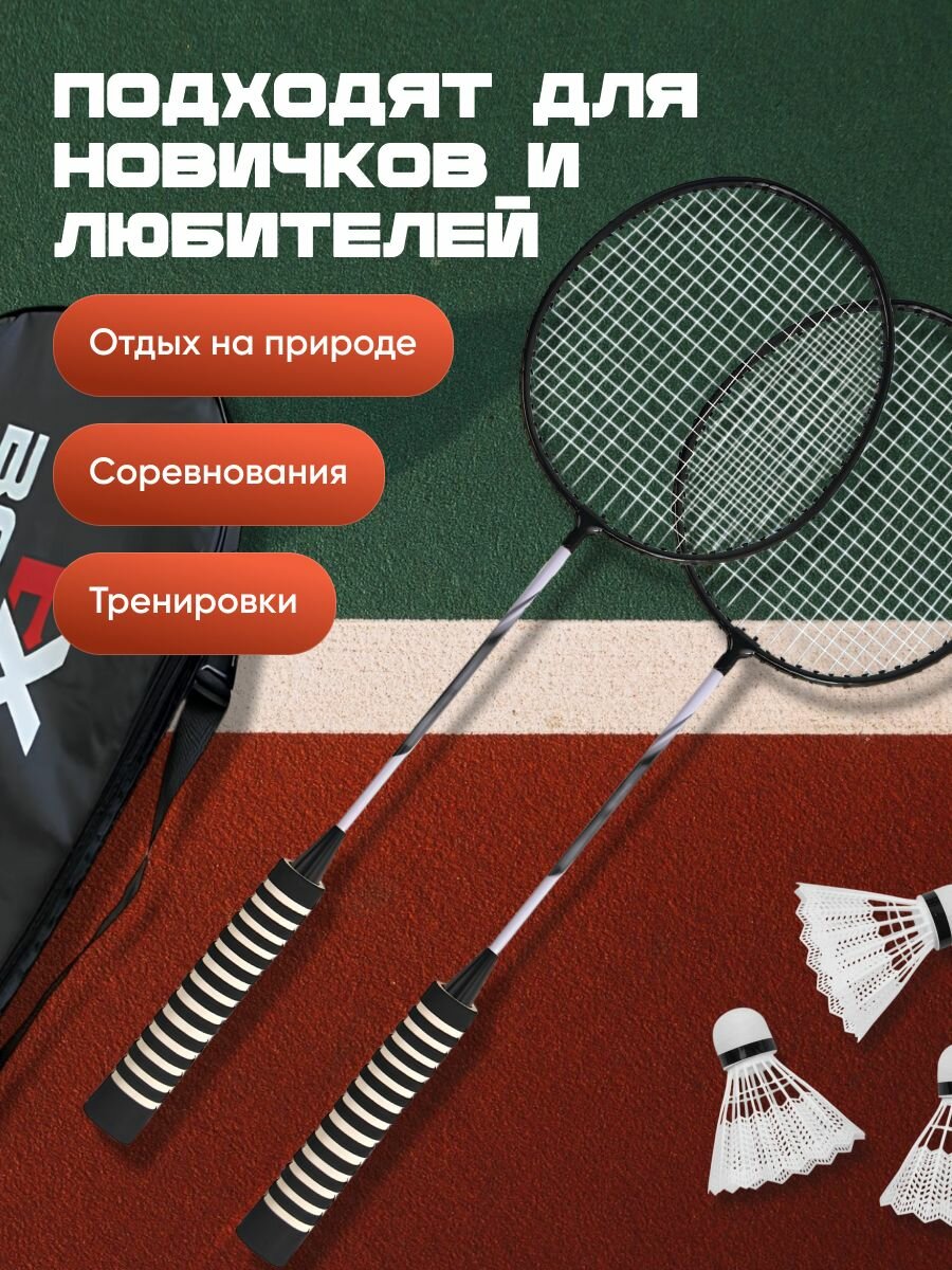 Ракетки для бадминтона с воланчиками и чехлом Shark Fit, черные, 2 шт интересное:
