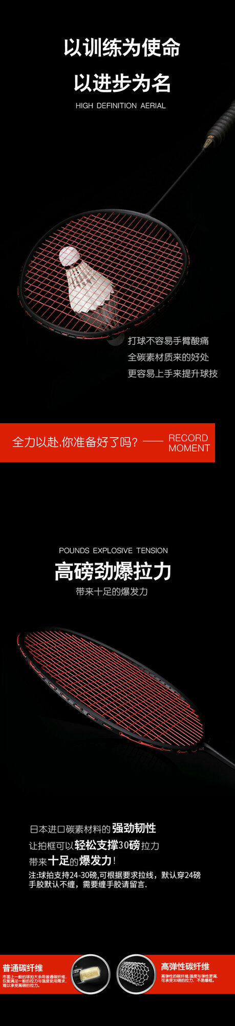 Ракетка для бадминтона, 4U, full carbon, feather shot, single shot, HC780