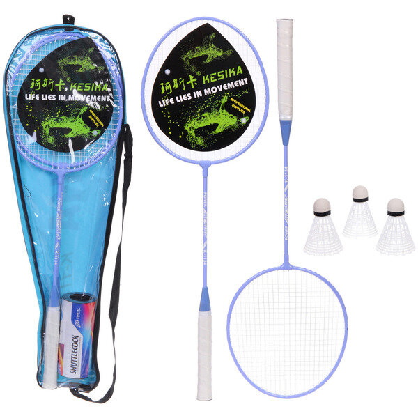 Бадминтон в наборе K-1134: 2 металлические ракетки 65 см, волан 3 шт, чехол (цвет: голубой) интересное: