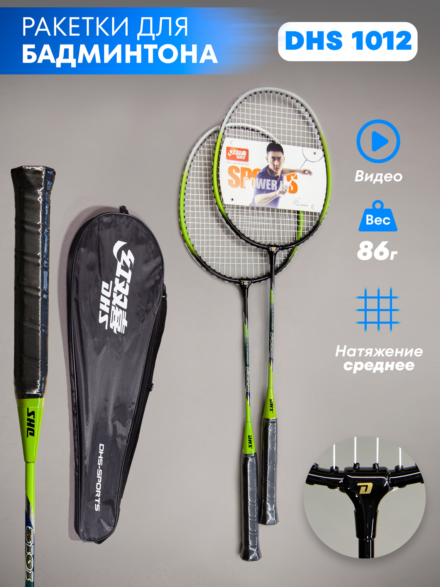 Набор ракеток для бадминтона DHS 1012 зел. интересное:
