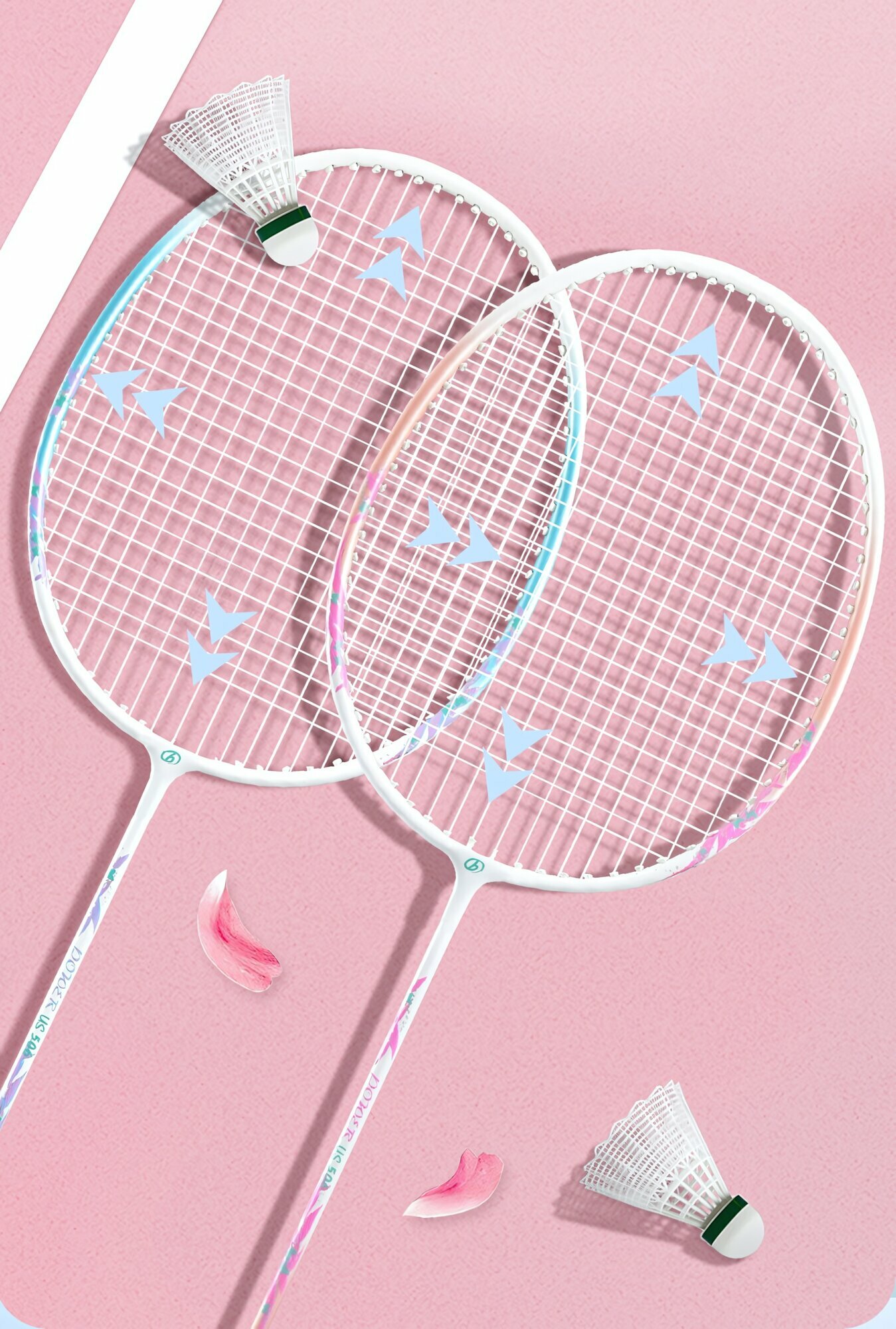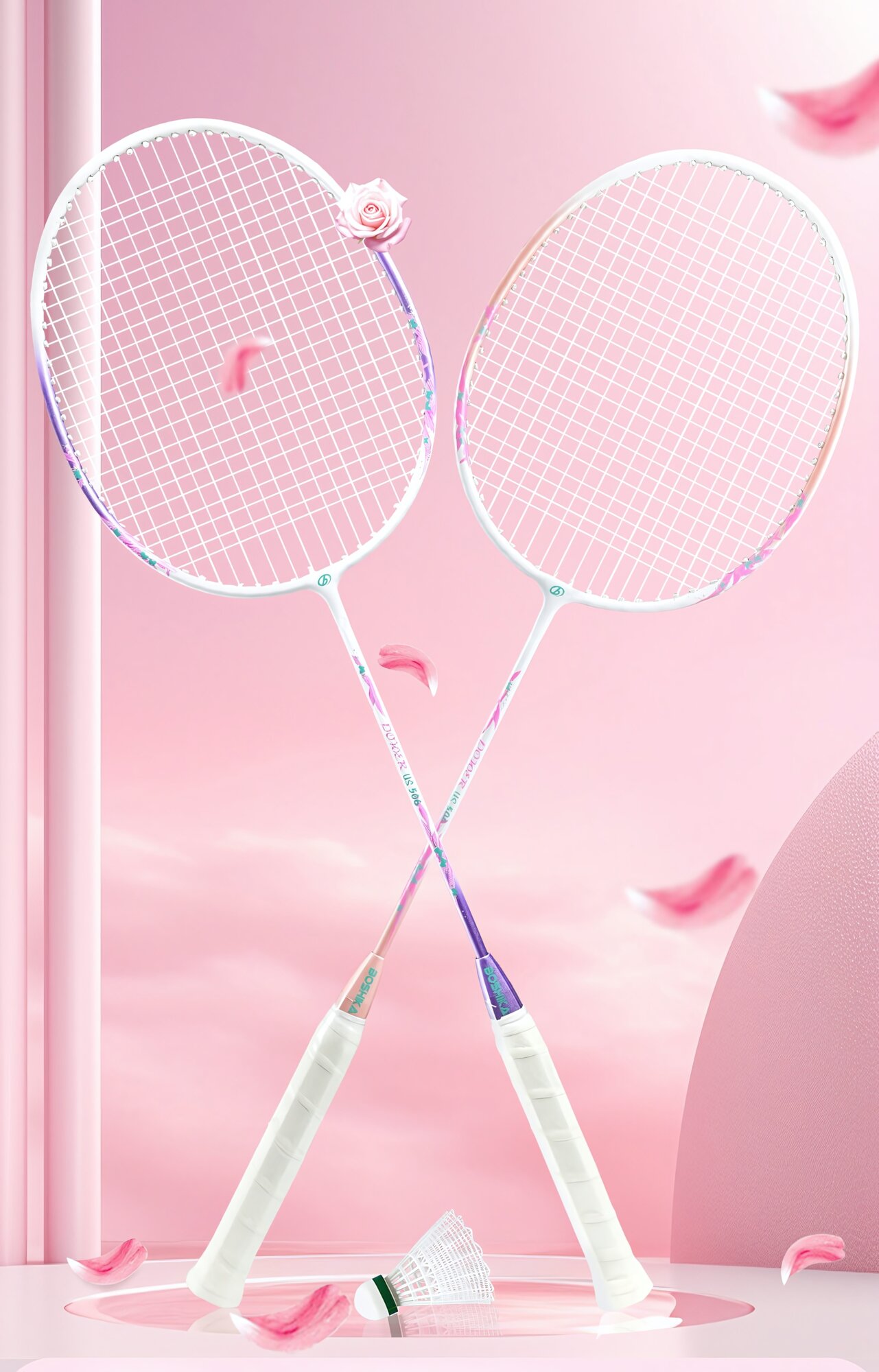 Купить Бадминтонные ракетки Boshika Macaron, 2 шт, для начинающих, розовый цвет, 3 волана и чехол в комплекте