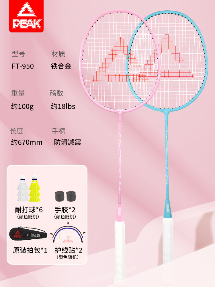 Купить Ракетка бадминтонная Peak Single Shot Double Shot, небесно-голубая, персиково-розовая, подарочная упаковка