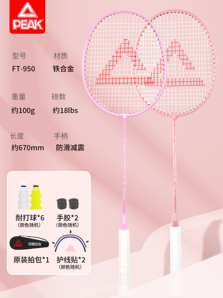 Ракетка бадминтонная Peak Single Shot Double Shot, небесно-голубая, персиково-розовая, подарочная упаковка