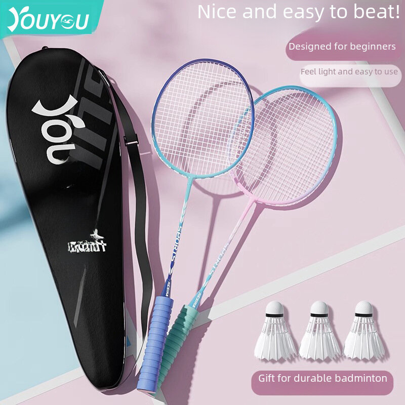 Купить Бадминтонная ракетка, легкий сплав, двойной удар, розово-красная, 3 шт.