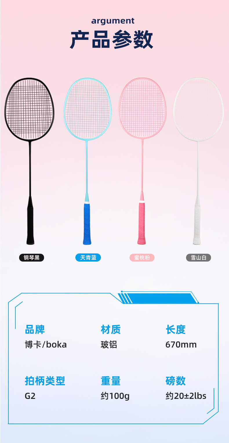 Ракетка для бадминтона "Boca", двойная, наступательная, для взрослых, прочная, семейная, тренировочная