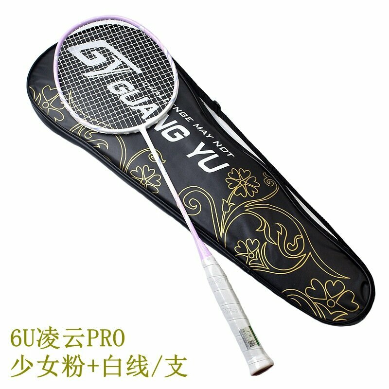 Купить Бадминтонная ракетка Guangyu, углеродное волокно, для взрослых, 6U, розовая, с белой линией
