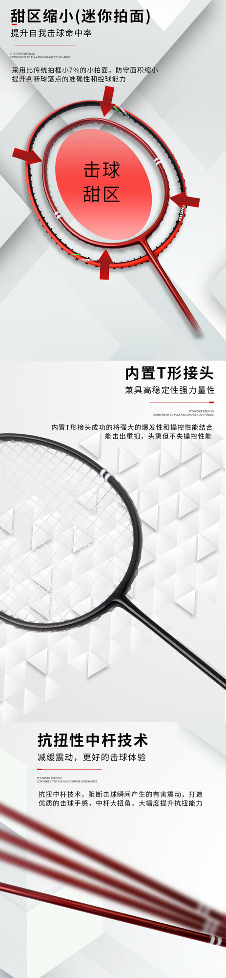 Ракетка бадминтонная Guangyu Small Racket Frame, углеродное волокно, красная