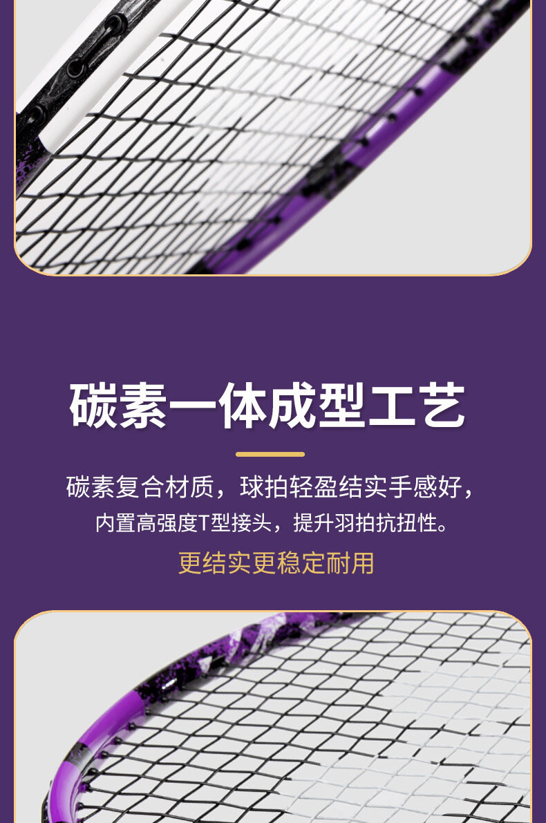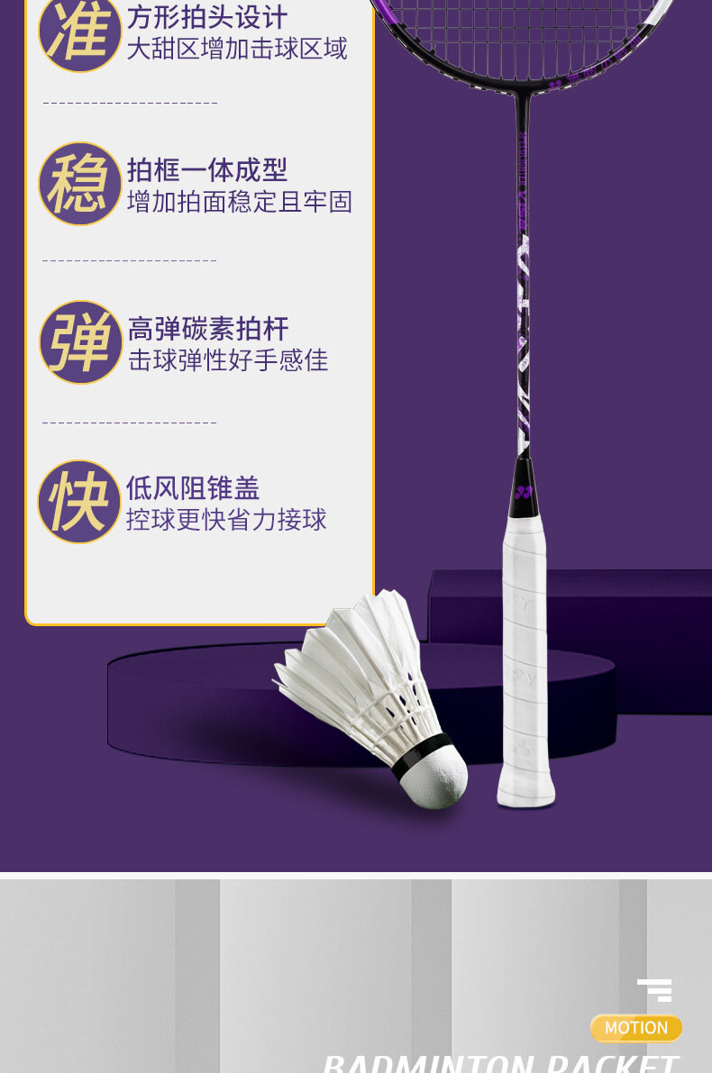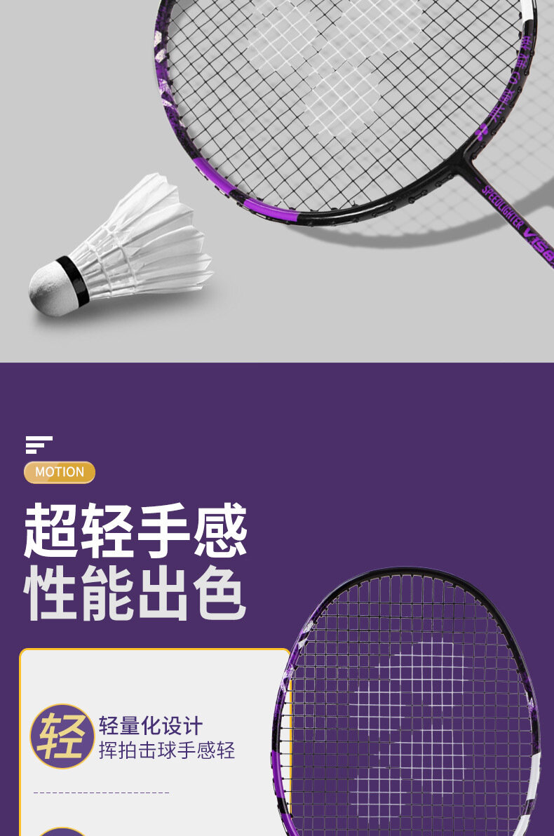 Ракетка для бадминтона V158, углеродное волокно, фиолетовая