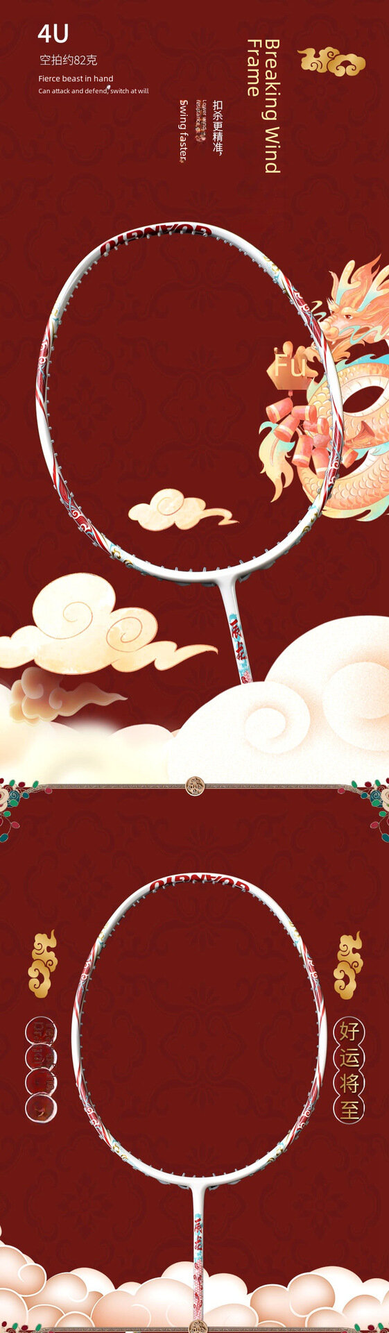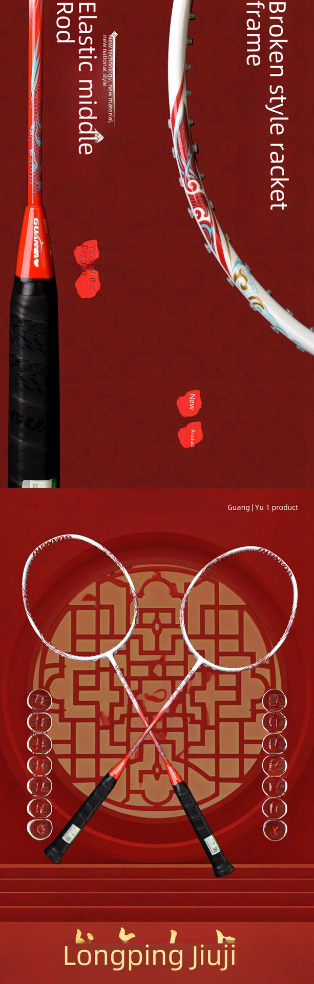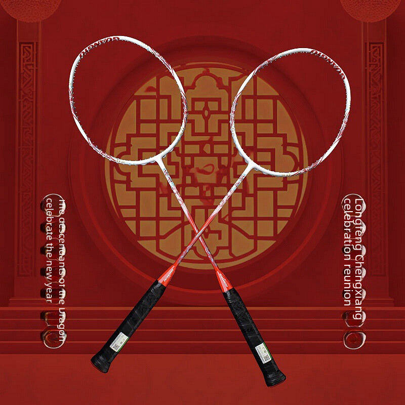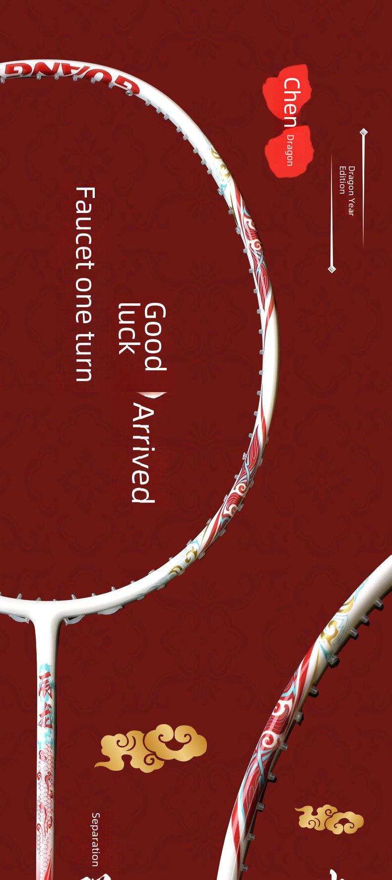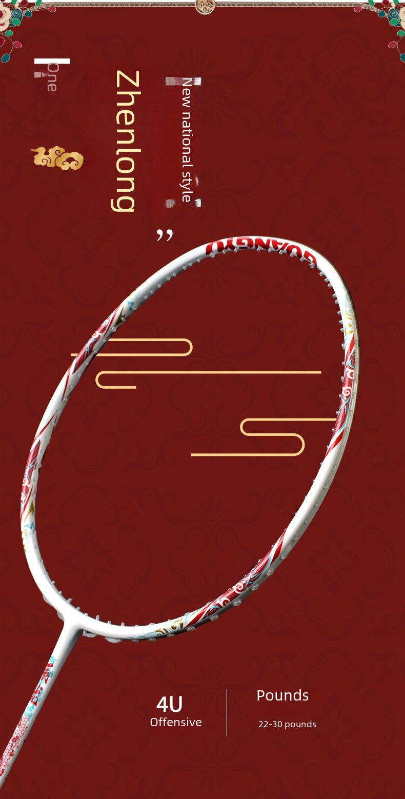 Ракетка для бадминтона Guangyu Chenlong "Год дракона", углеродное волокно, белая с голубым интересное:
