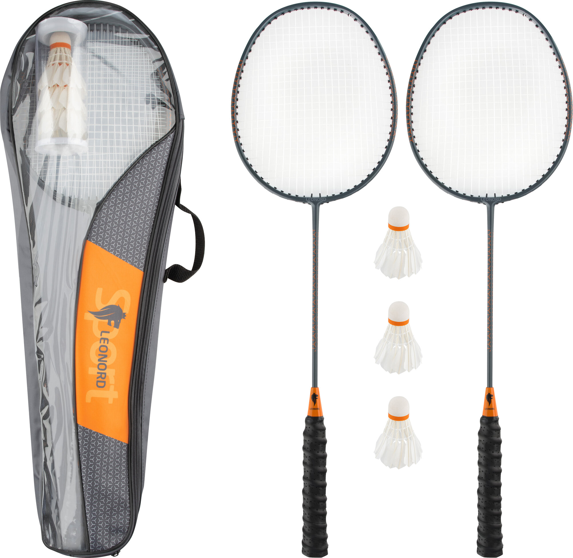 Купить Набор для игры в бадминтон Leonord, в комплекте: 2 ракетки, 3 волана, чехол