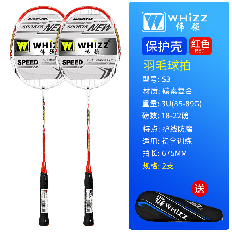 Ракетка для бадминтона "Weiqiang", защита от разъединения, углеродное волокно, красная