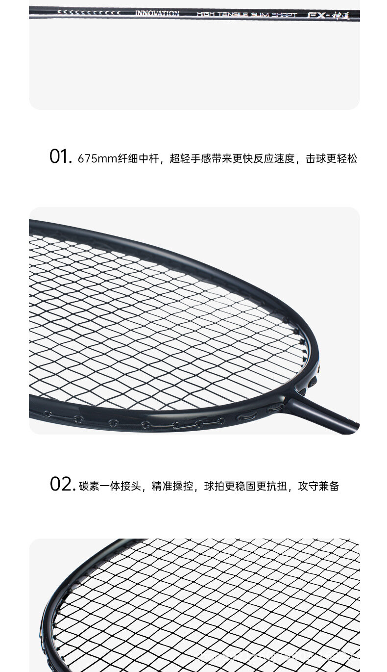 Бадминтонная ракетка, 5U, углеродное волокно, черная, с подарками