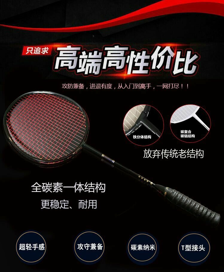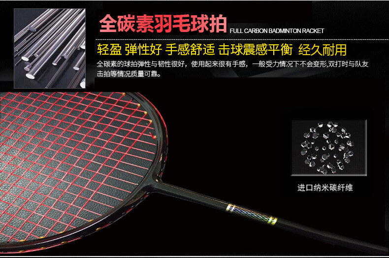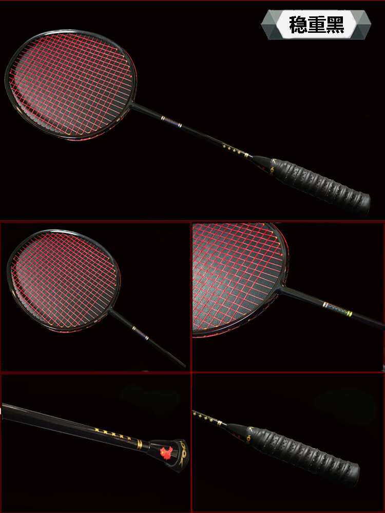 Бадминтонная ракетка, 5U, углеродное волокно, для начинающих, черная