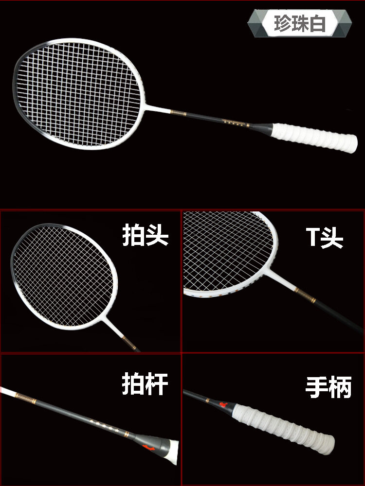 Бадминтонная ракетка, 5U, углеродное волокно, для начинающих, жемчужно-белая