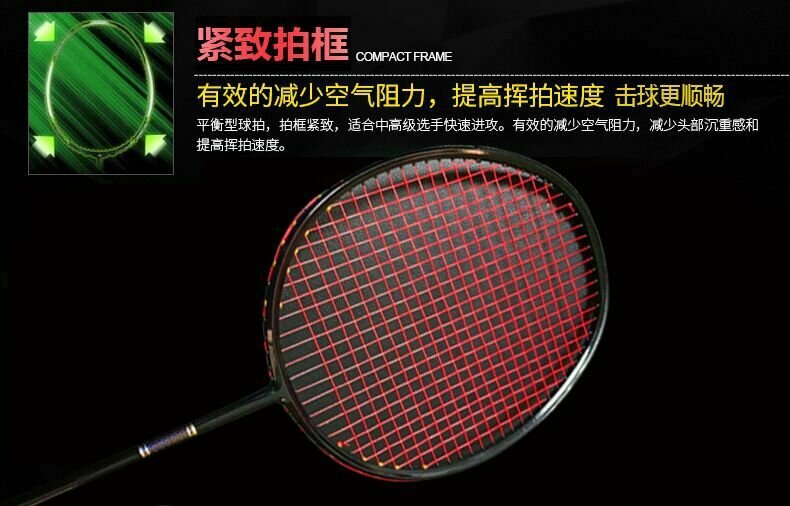 Бадминтонная ракетка, углеродное волокно, флуоресцентно-зеленая