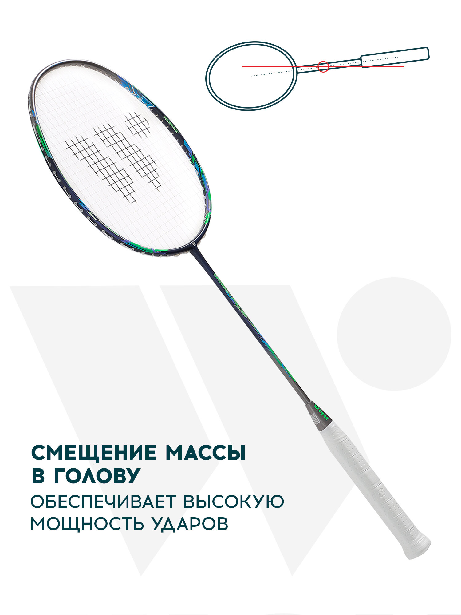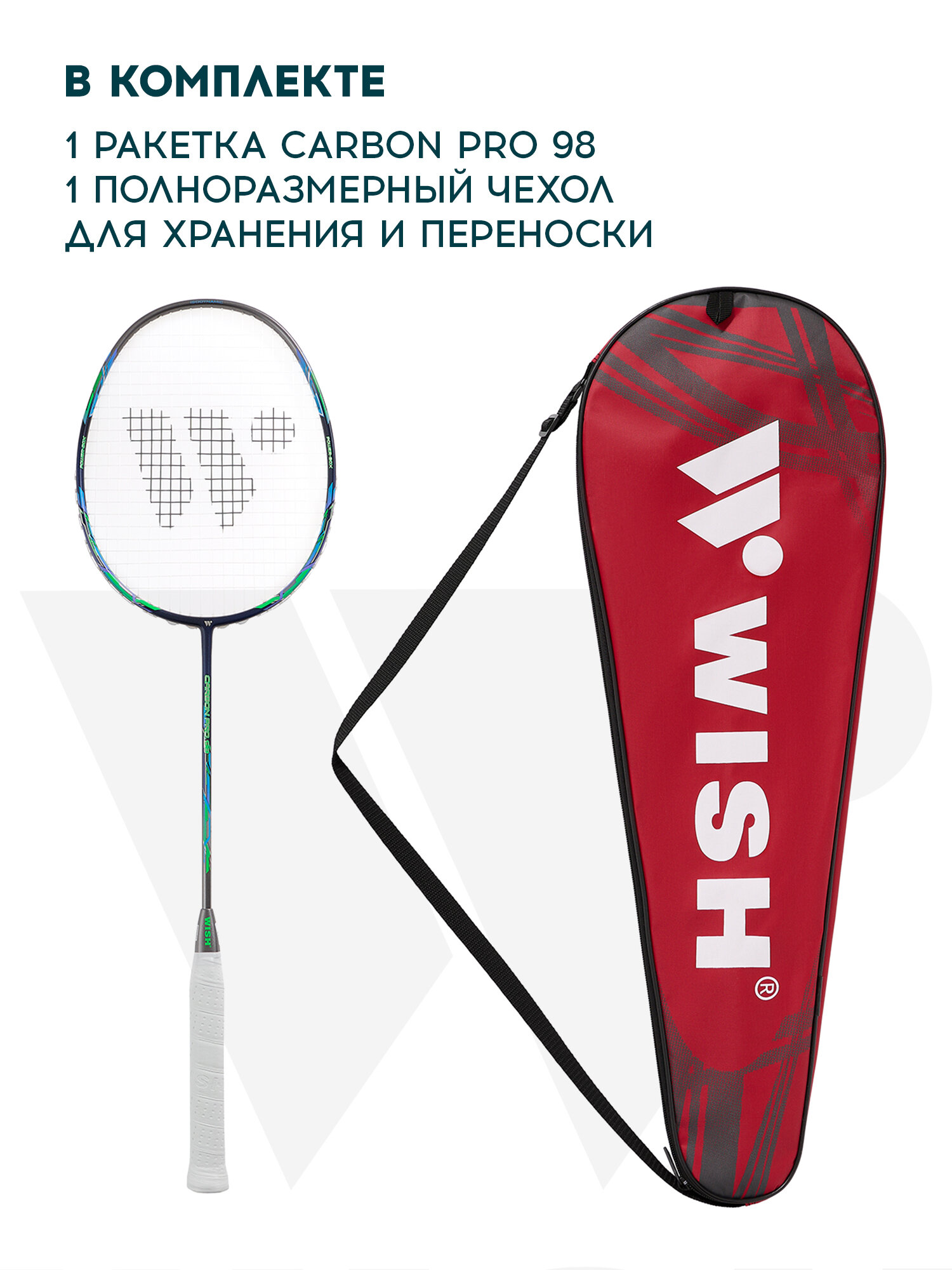 Ракетка для бадминтона WISH Carbon Pro 98, цвет серый/зеленый интересное: