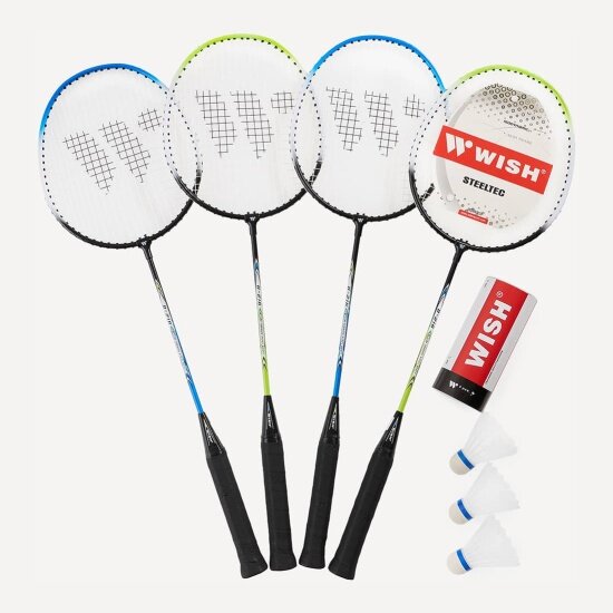 Набор для бадминтона WISH Steeltec 216K (2 ракетки+2 волана), желтый/зеленый, детский