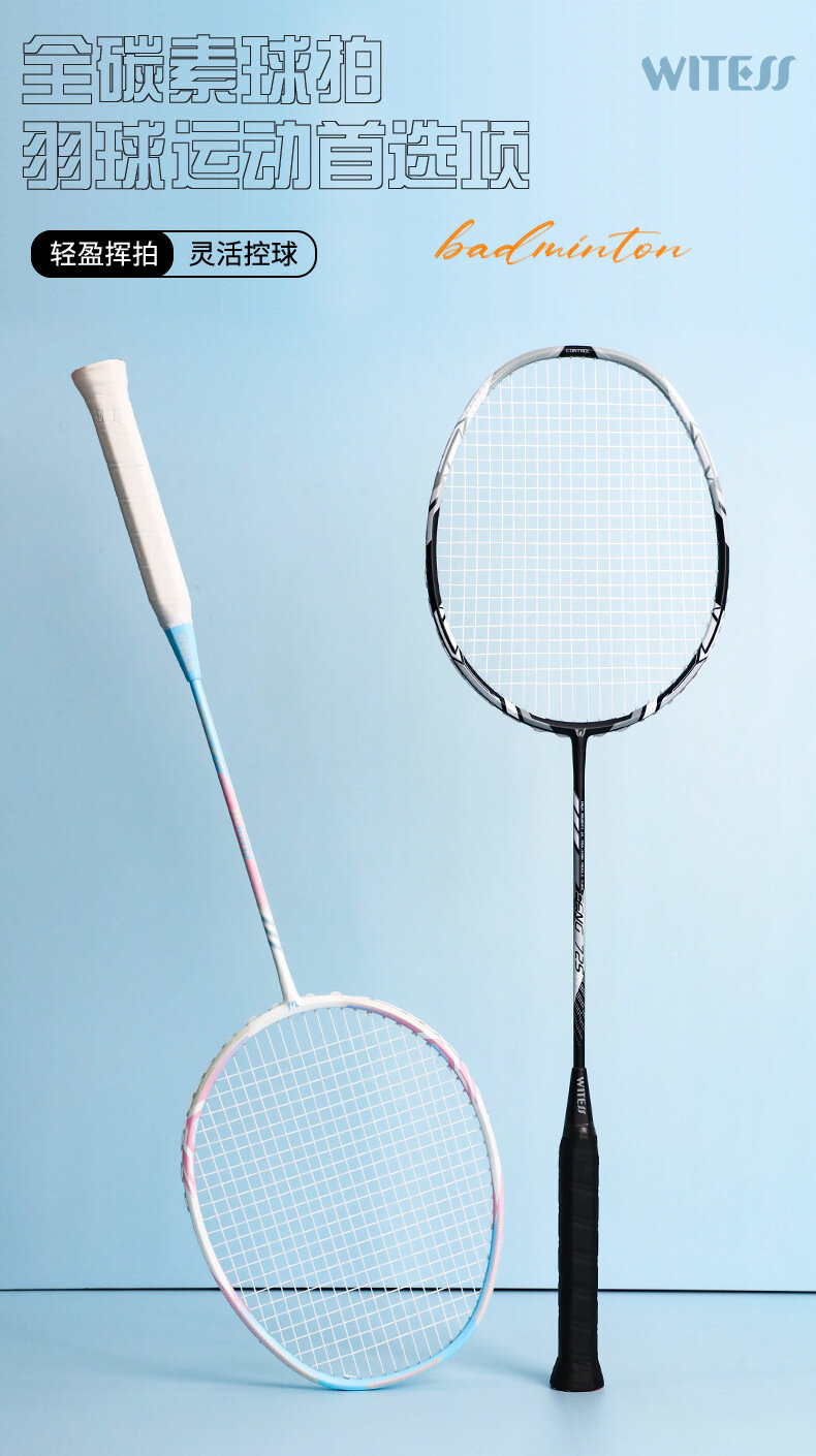 Бадминтонная ракетка WITESSEN, углеродное волокно, небесно-голубая, розовая, 722