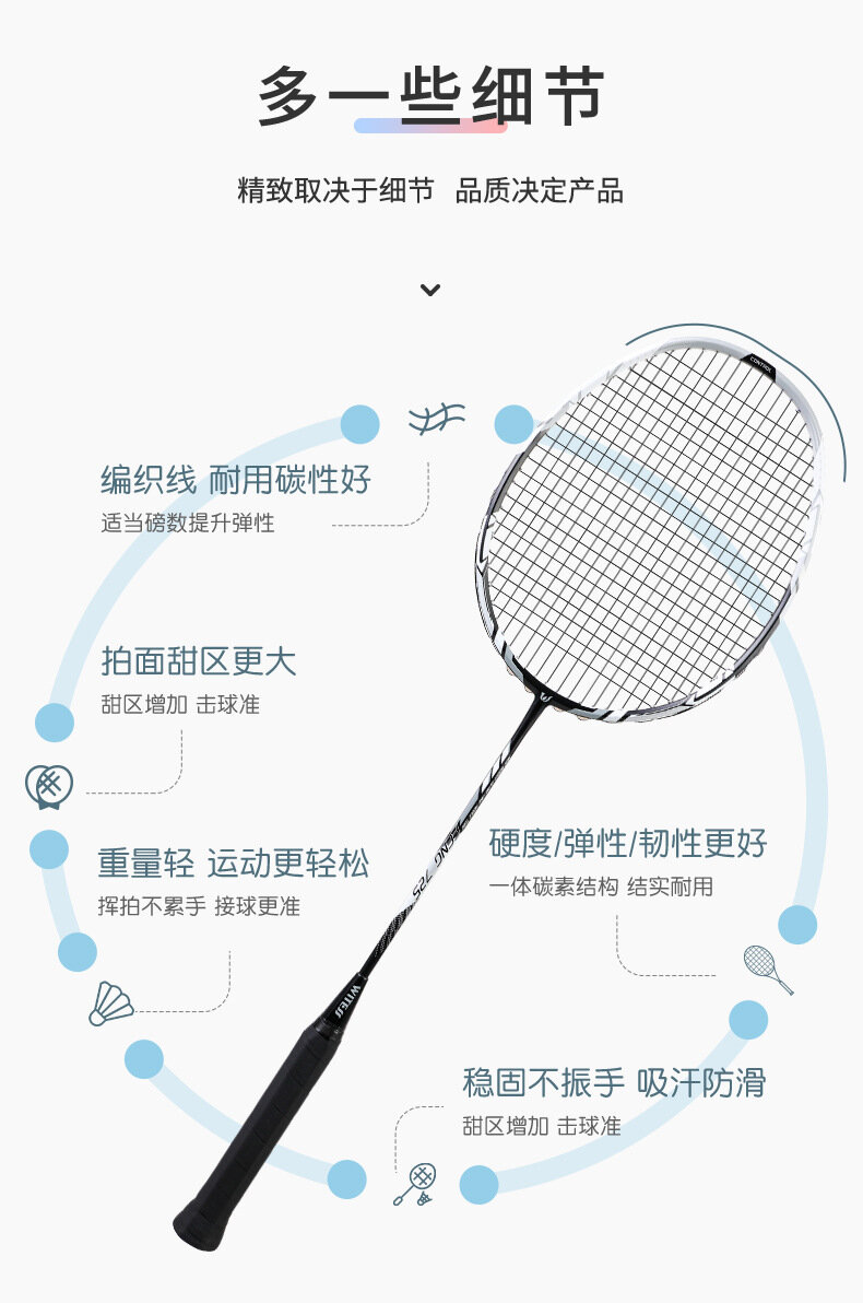 Купить Ракетка бадминтонная WITESSEN, углеродное волокно, черно-белая, 725